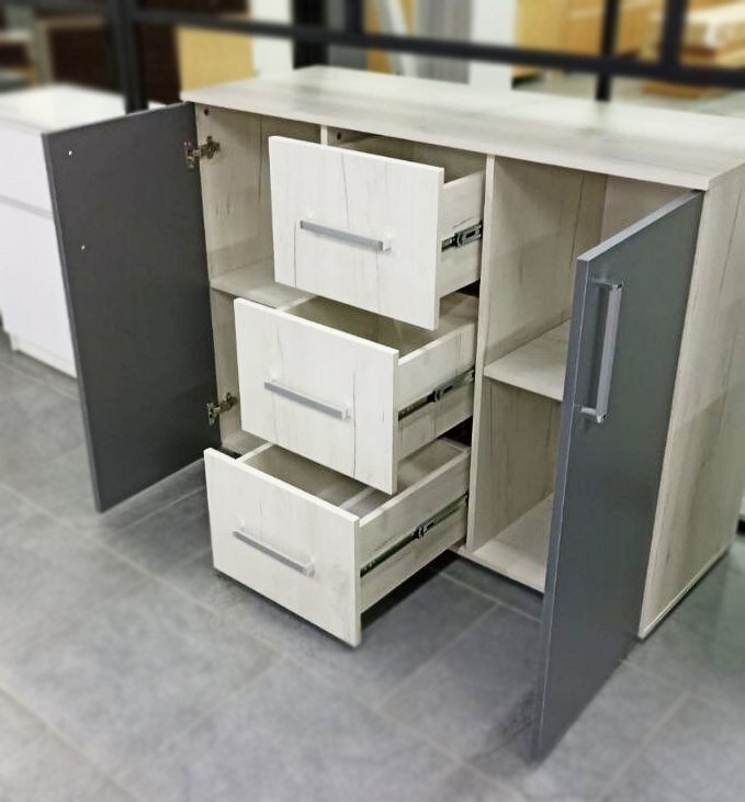 Комод Фиеста 3 ящика, 2 дверцы/Тумба 120х90х45 см, Дуб крафт белый/Графит, ЛДСП интересное: