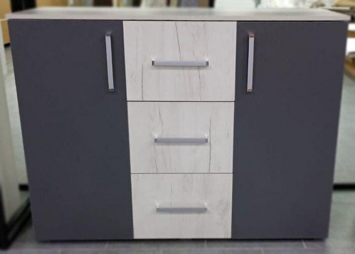 Купить Комод Фиеста 3 ящика, 2 дверцы/Тумба 120х90х45 см, Дуб крафт белый/Графит, ЛДСП