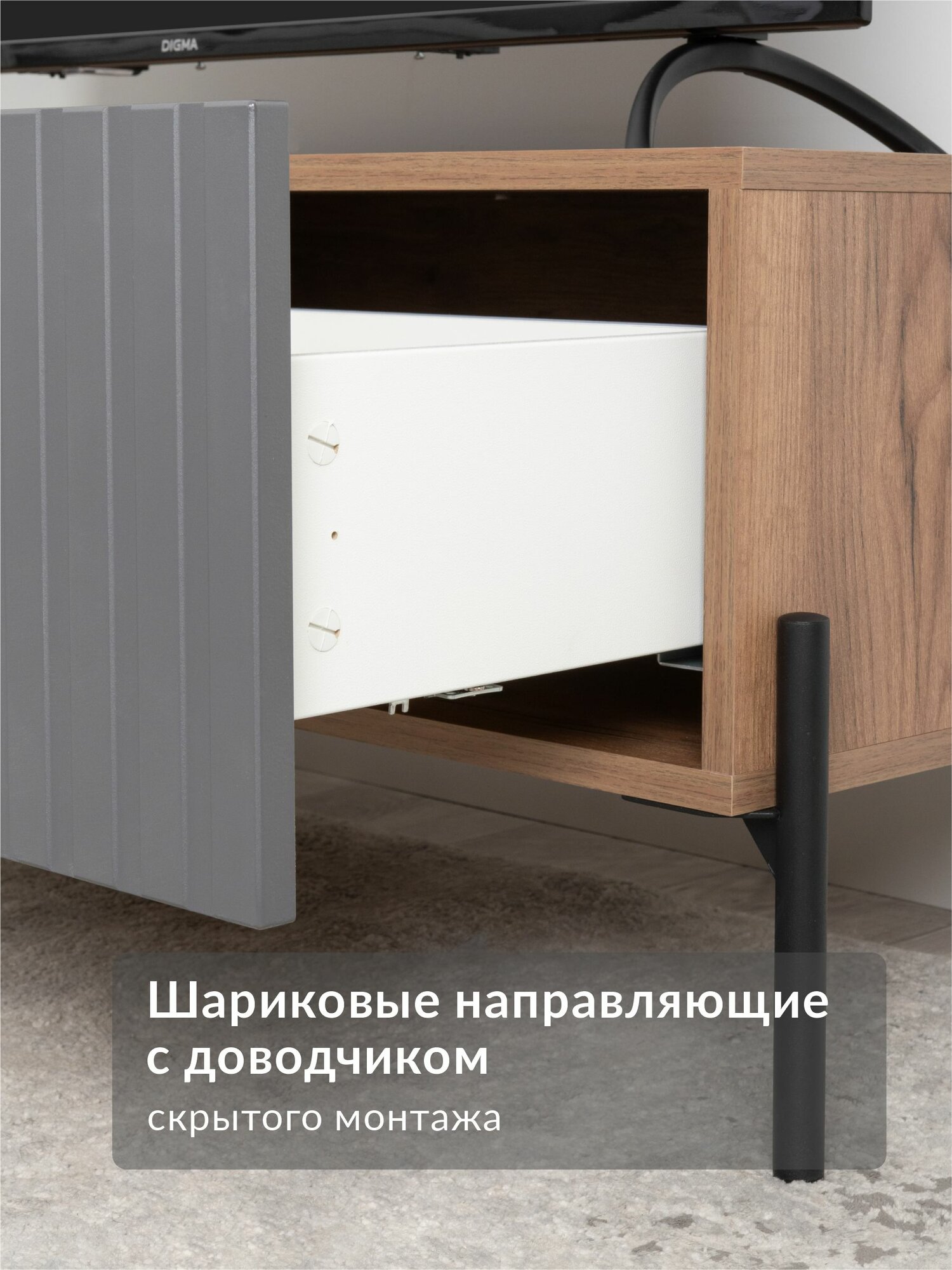 Тумба под телевизор Вивьен 16.53, Серый Графит 0162 РЕ, Веллюто Капучино, Белый PE шагрень