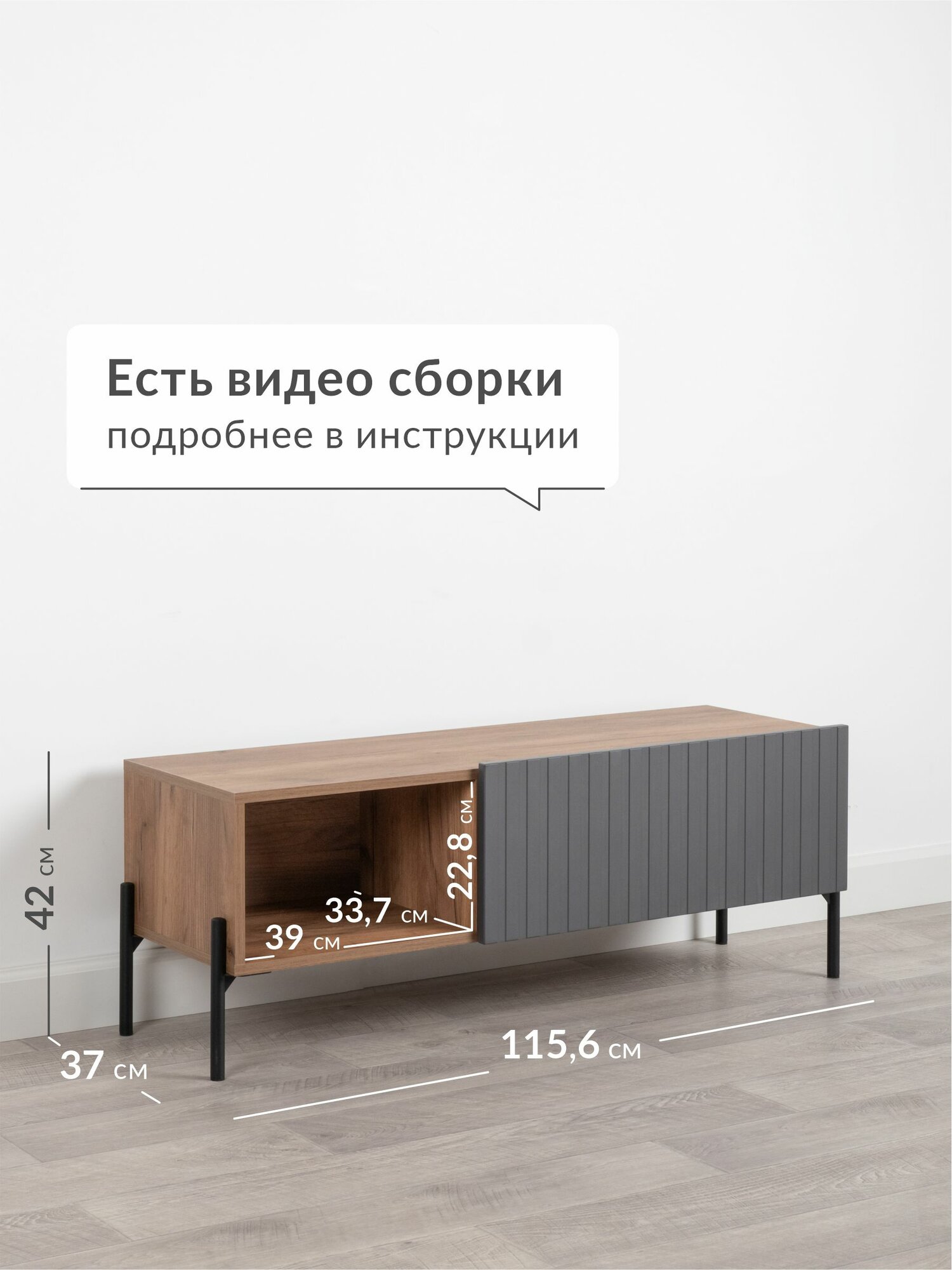 Тумба под телевизор Вивьен 16.53, Дуб Крафт табачный, графит, Белый PE шагрень интересное: