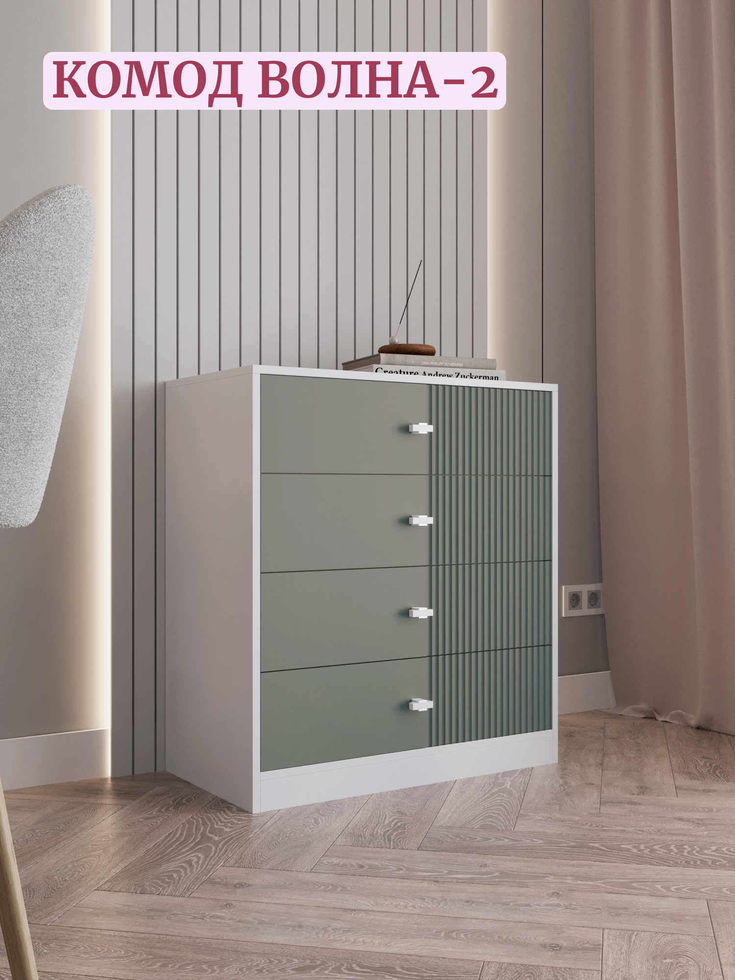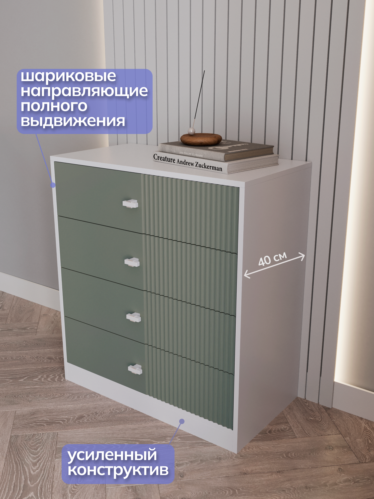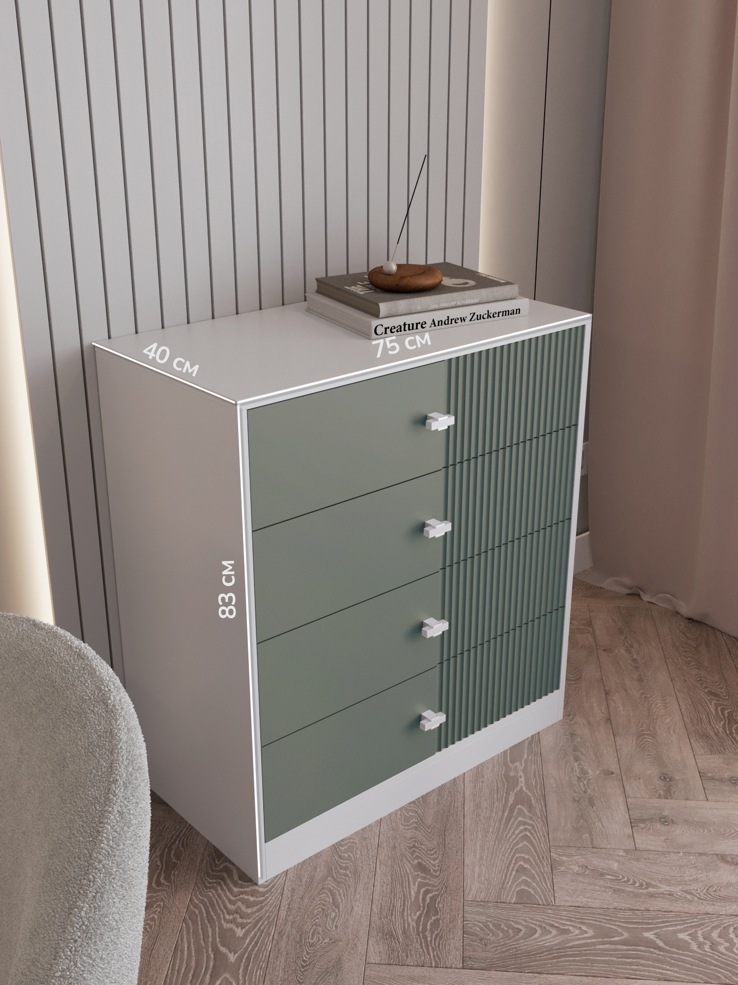 Комод для одежды в спальню большой, зеленый/белый, 75х40х83 см интересное: