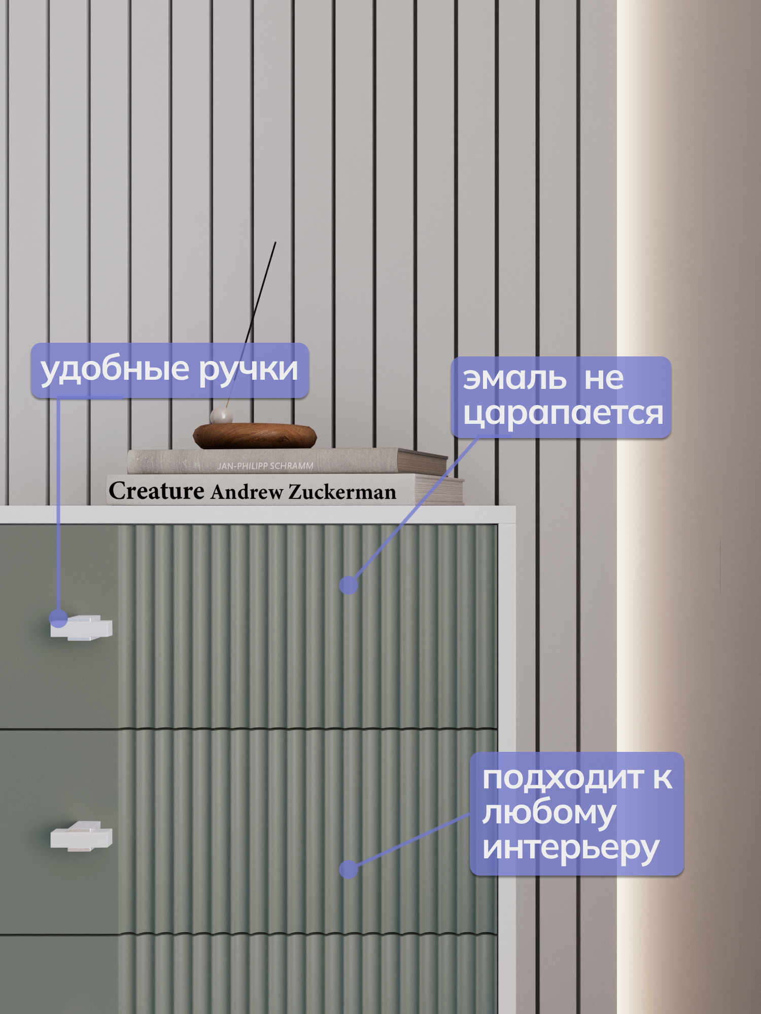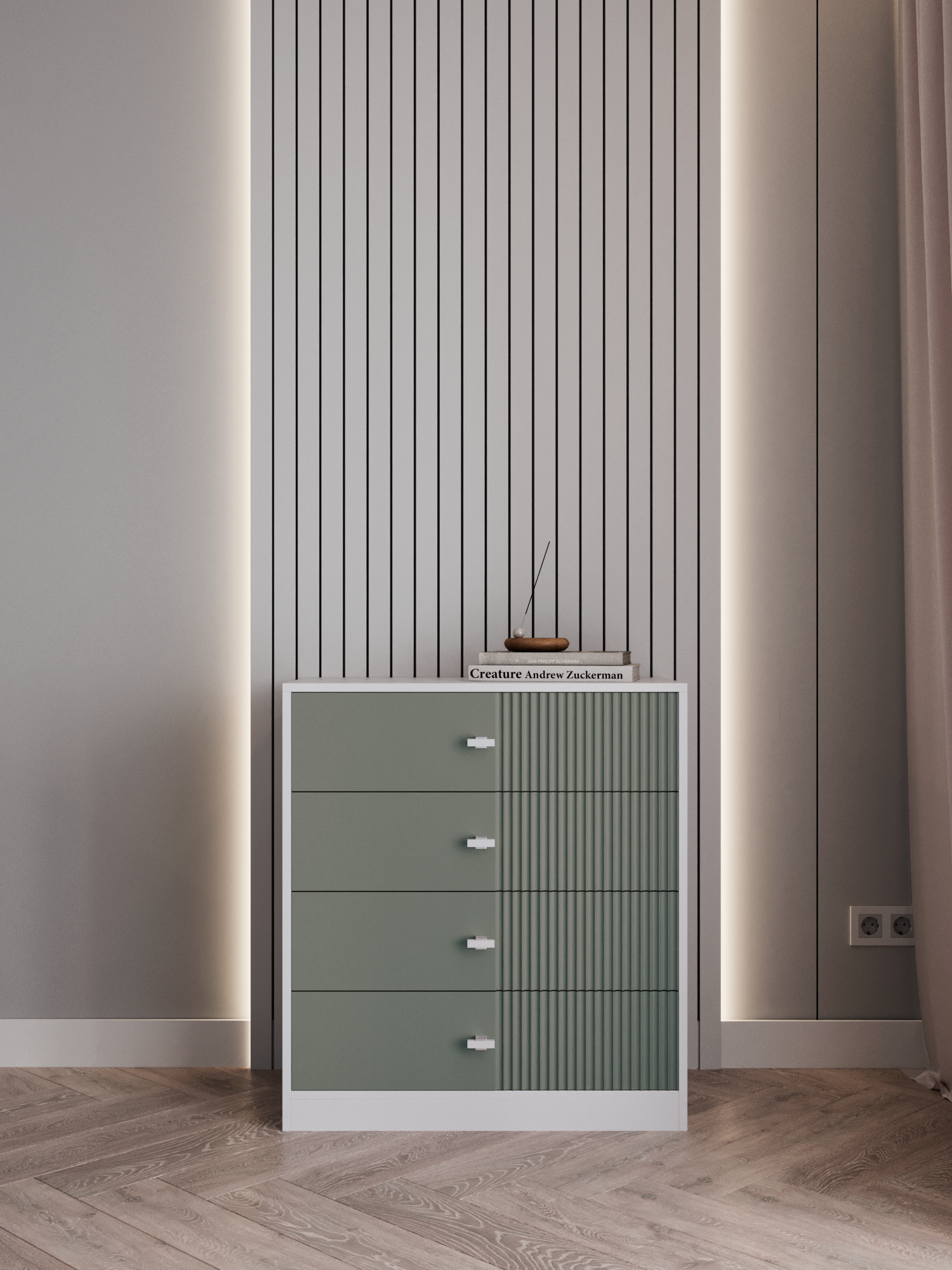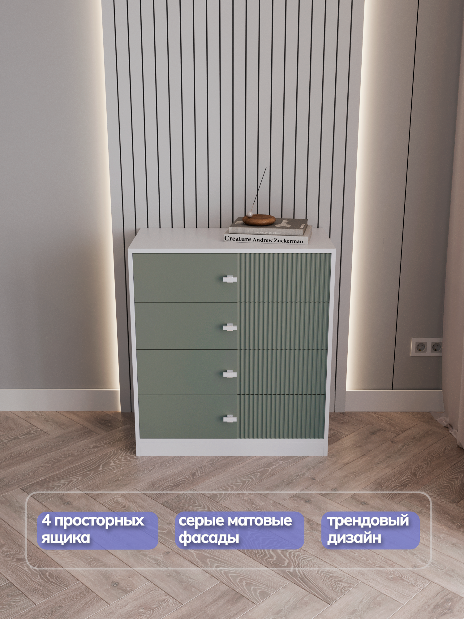 Комод для одежды в спальню большой, зеленый/белый, 75х40х83 см интересное: