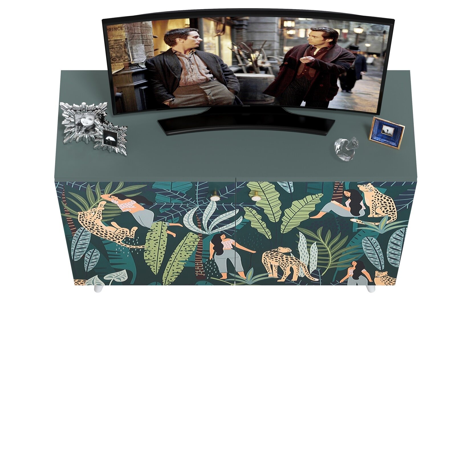 Купить Комод-тумба Моби Либера 16.230.01 пасифай/белый, 115,3х42,6х92,3 см, фасады с рисунком Тропический лес, две дверки