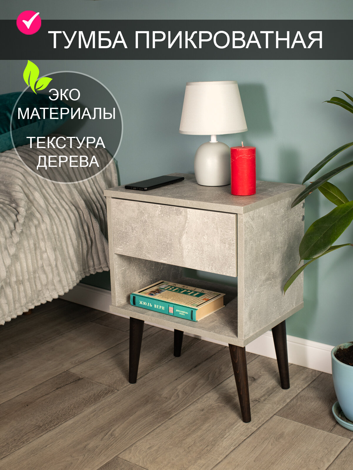 Тумба прикроватная на деревянных ножках "Дженни 5" интересное: