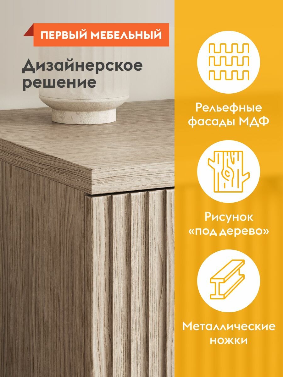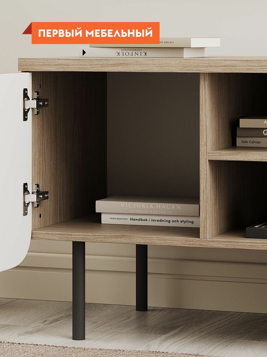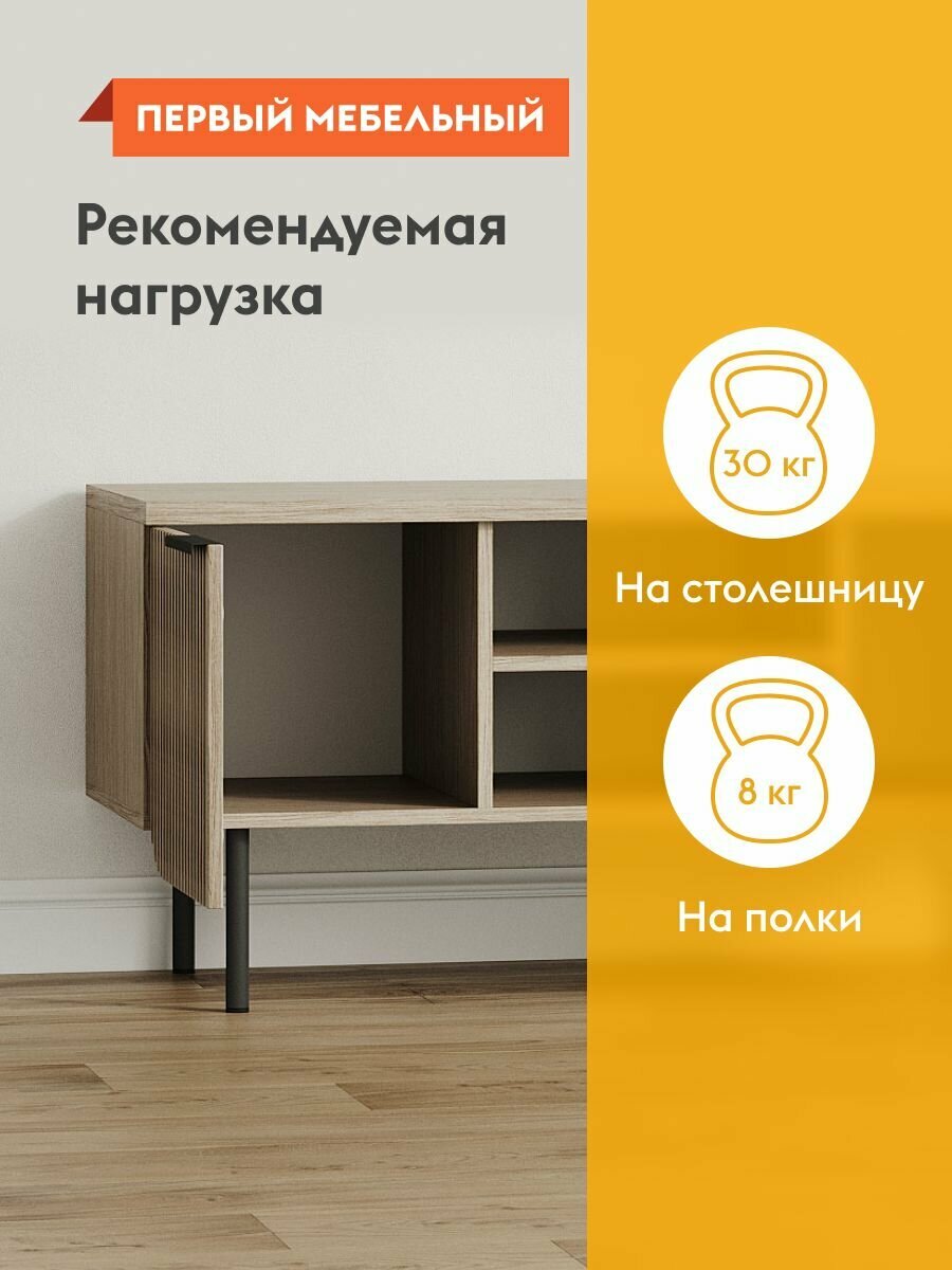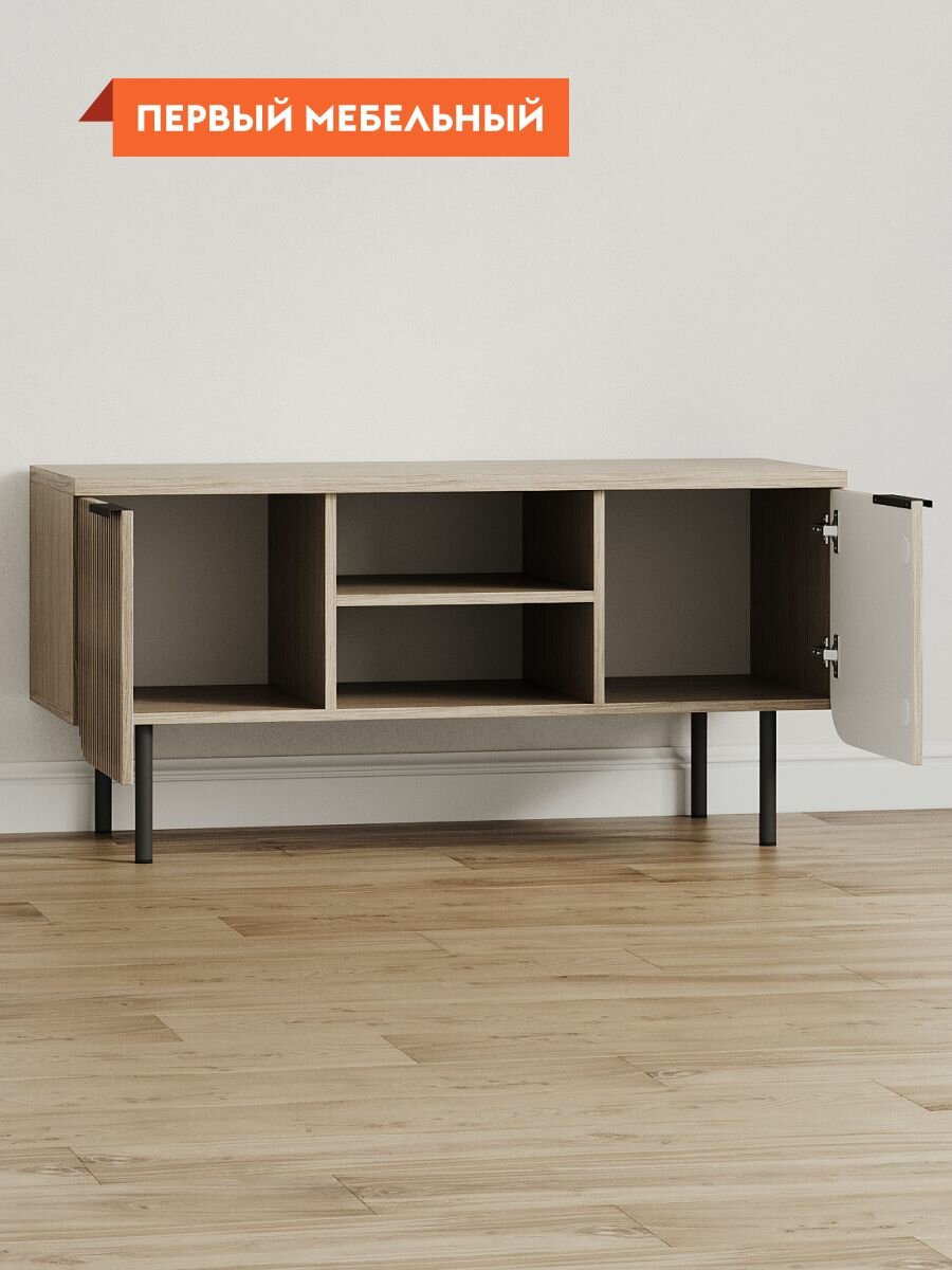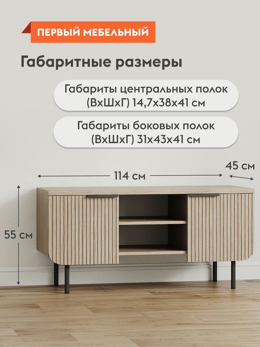 Тумба под телевизор Волкер с нишей, напольная, с полками, 114х45х55 см, Дуб Сальвадор, ЛДСП / Дуб светлый, МДФ интересное: