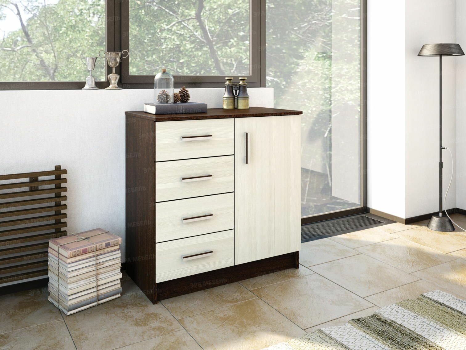 Комод Эра 1 дверка + 4 ящика К800-1Д (80х43х83 см), Венге/Лоредо