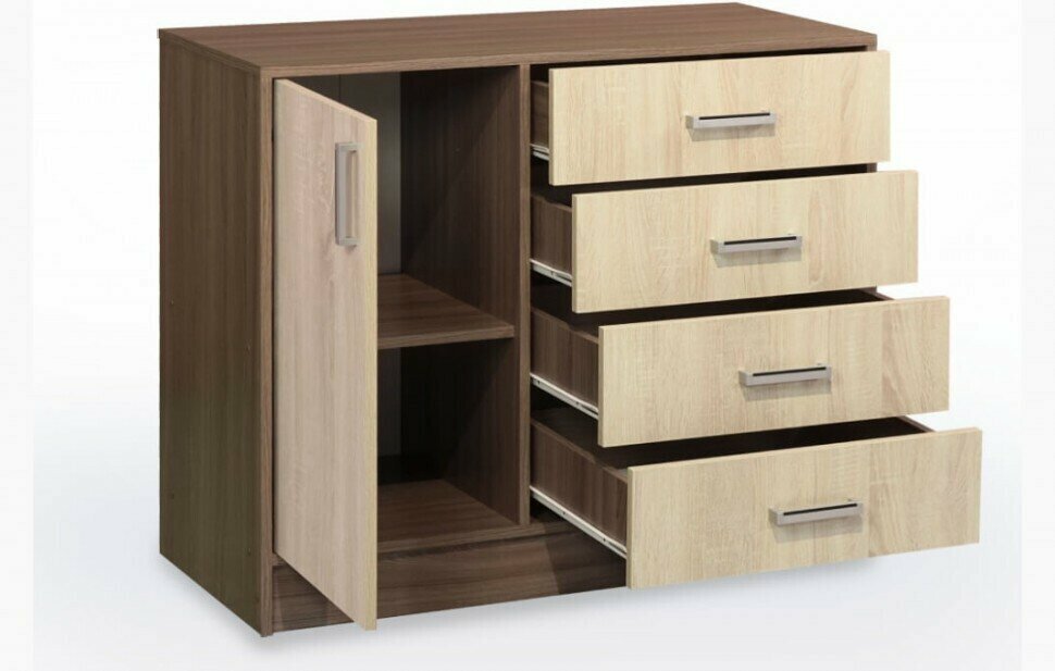 Комод Эра 1 дверка + 4 ящика К800-1Д (80х43х83 см), Венге/Лоредо