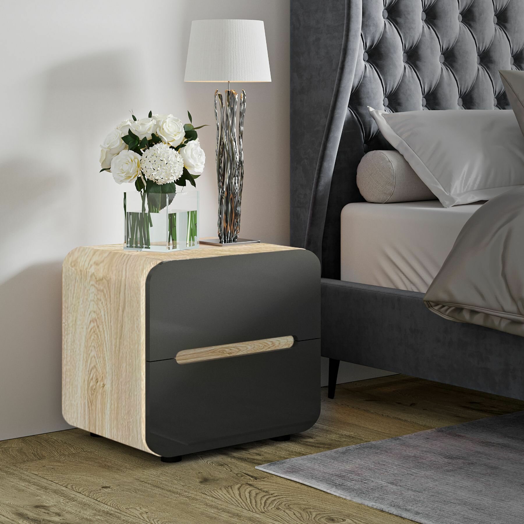 Тумба прикроватная с ящиками Ницца 50, светлое дерево-графит