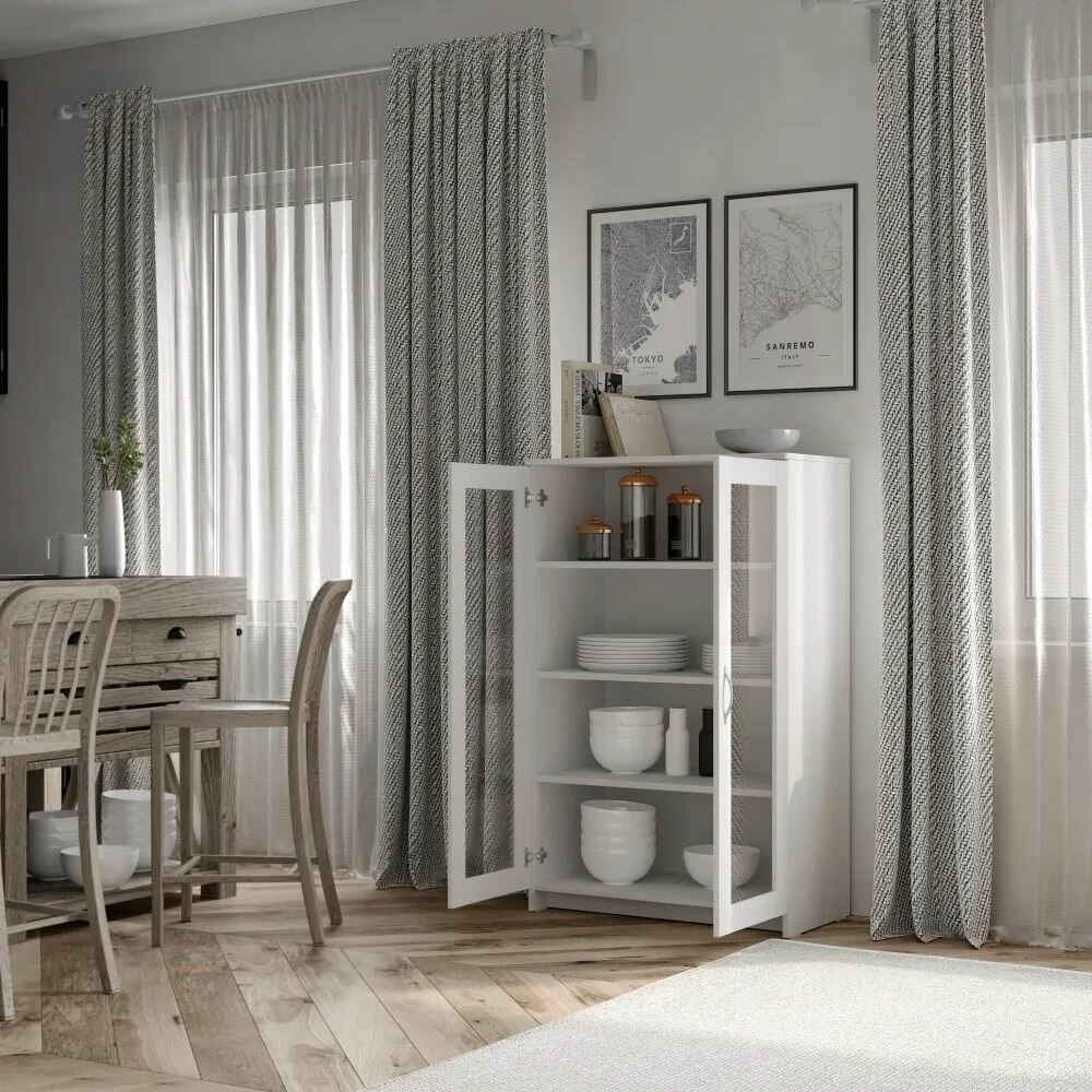 Тумба ГУД ЛАКК Сириус, 2 двери со стеклом, 78х41х123 см, белая
