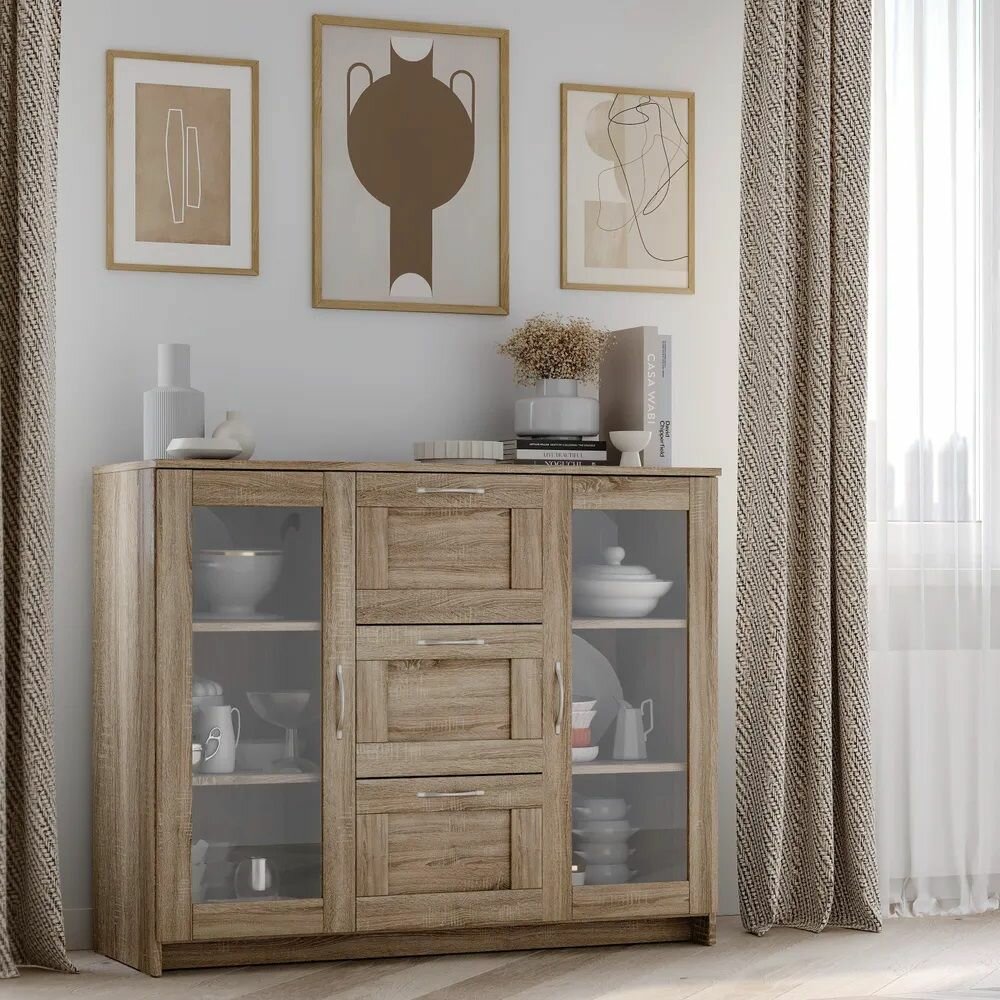 СохранитьСириус тумба 2 двери со стеклом и 3 ящика 117х95 сонома RU интересное: