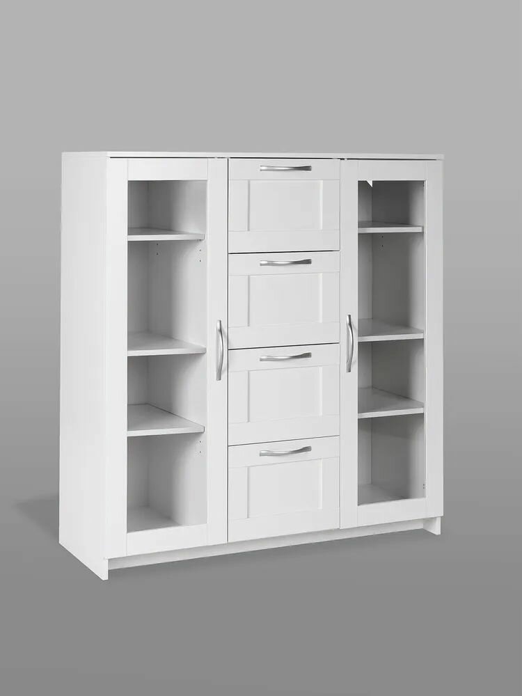 Купить Тумба сириус, 2 двери со стеклом и 4 ящика, 117х41х123 см, белая