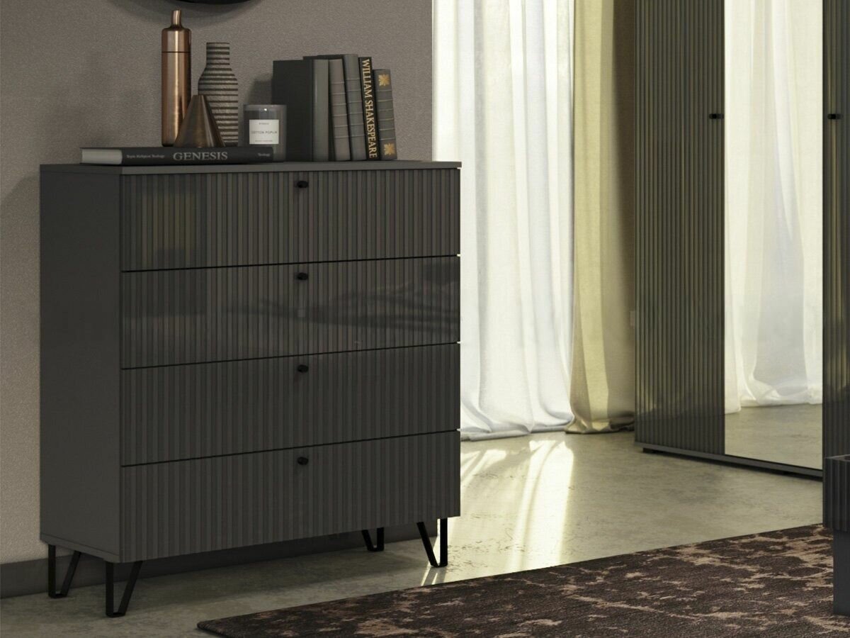 Комод Оливия 4-ящ (Графит, Графит Глянец)