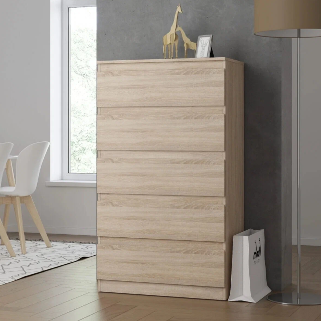 Купить Комод с 5 ящиками для одежды KONEVIK (коневик), 70х40х112 см, дуб сонома