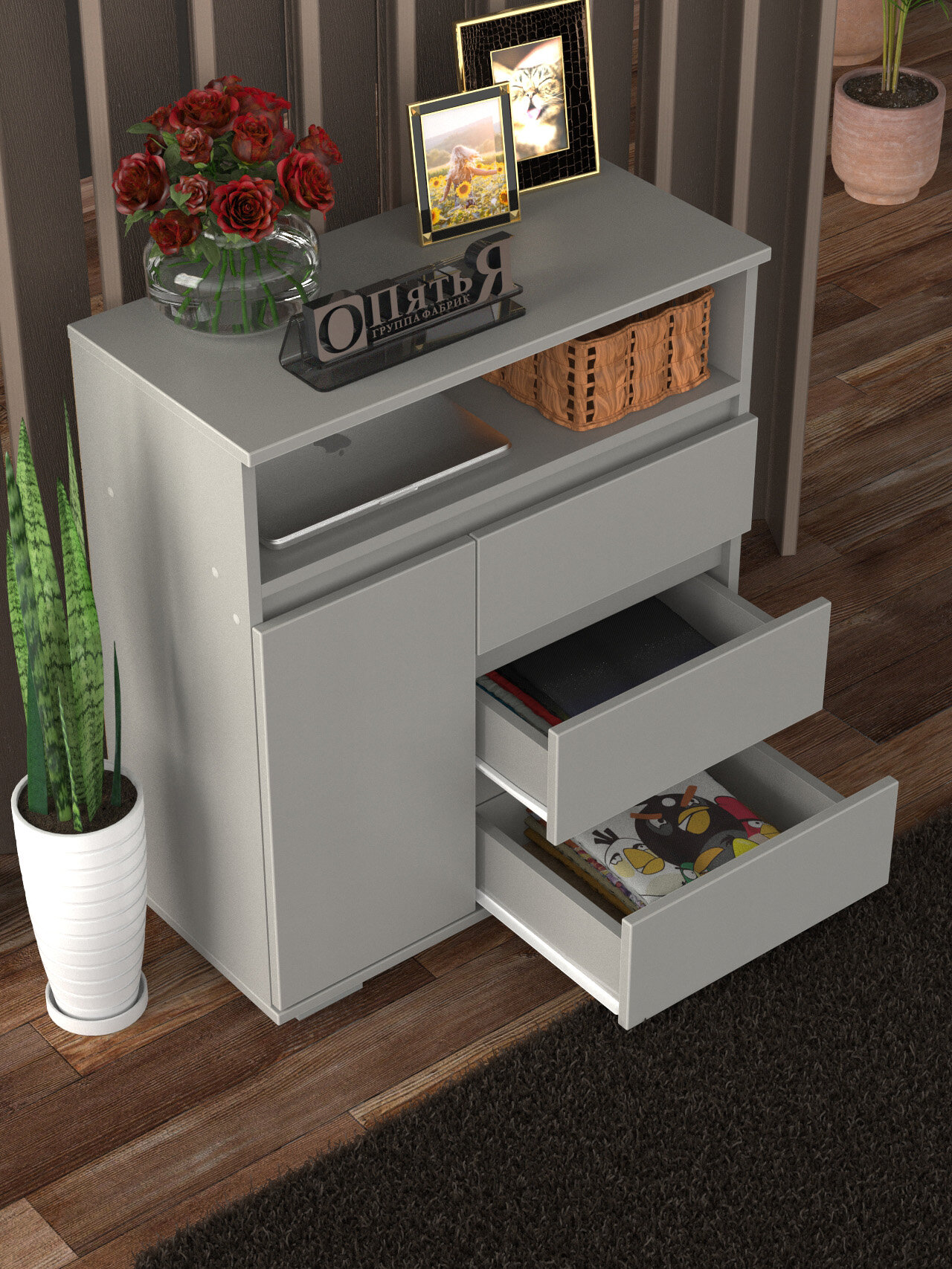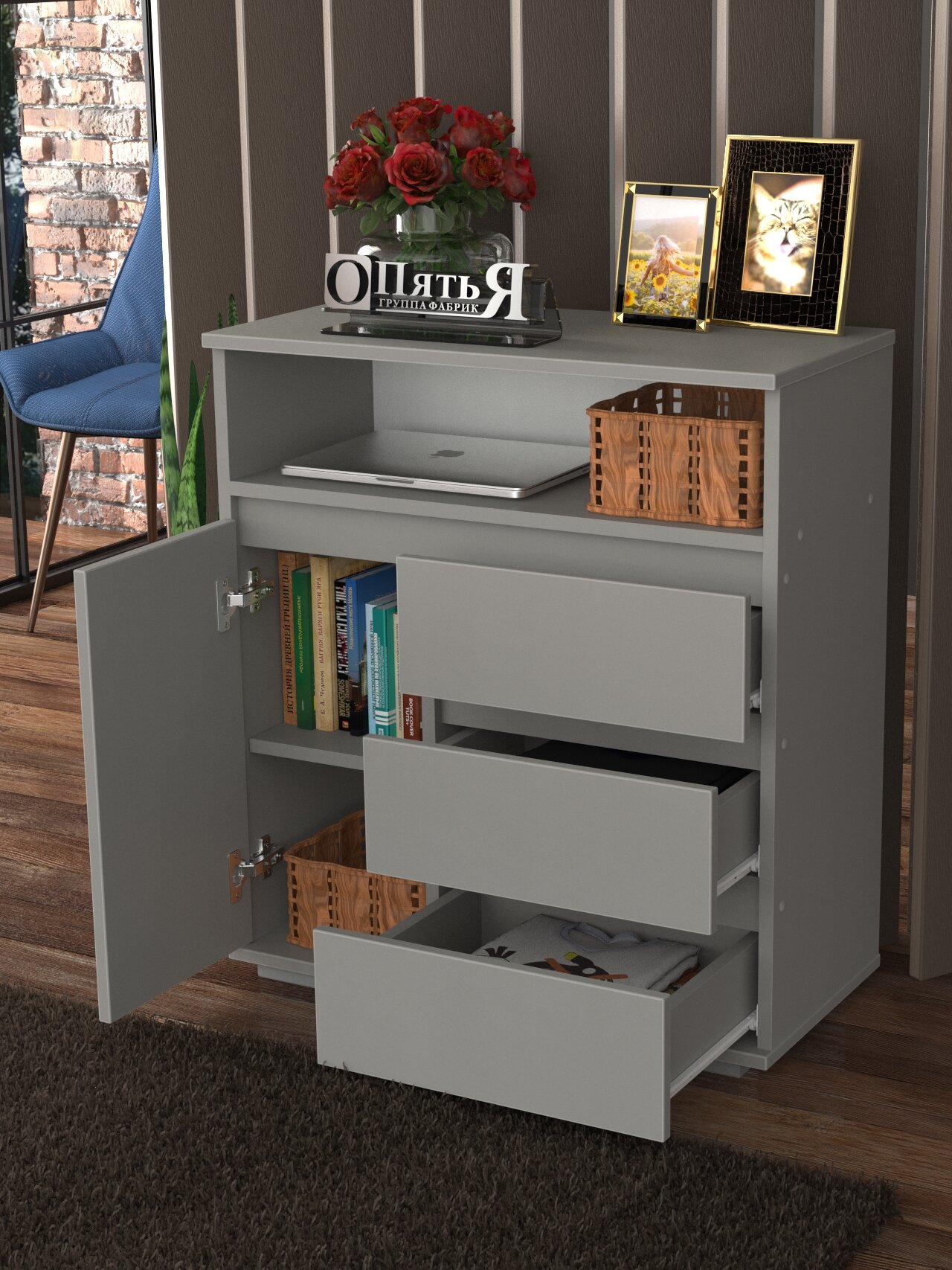Комод деревянный №16 серый интересное: