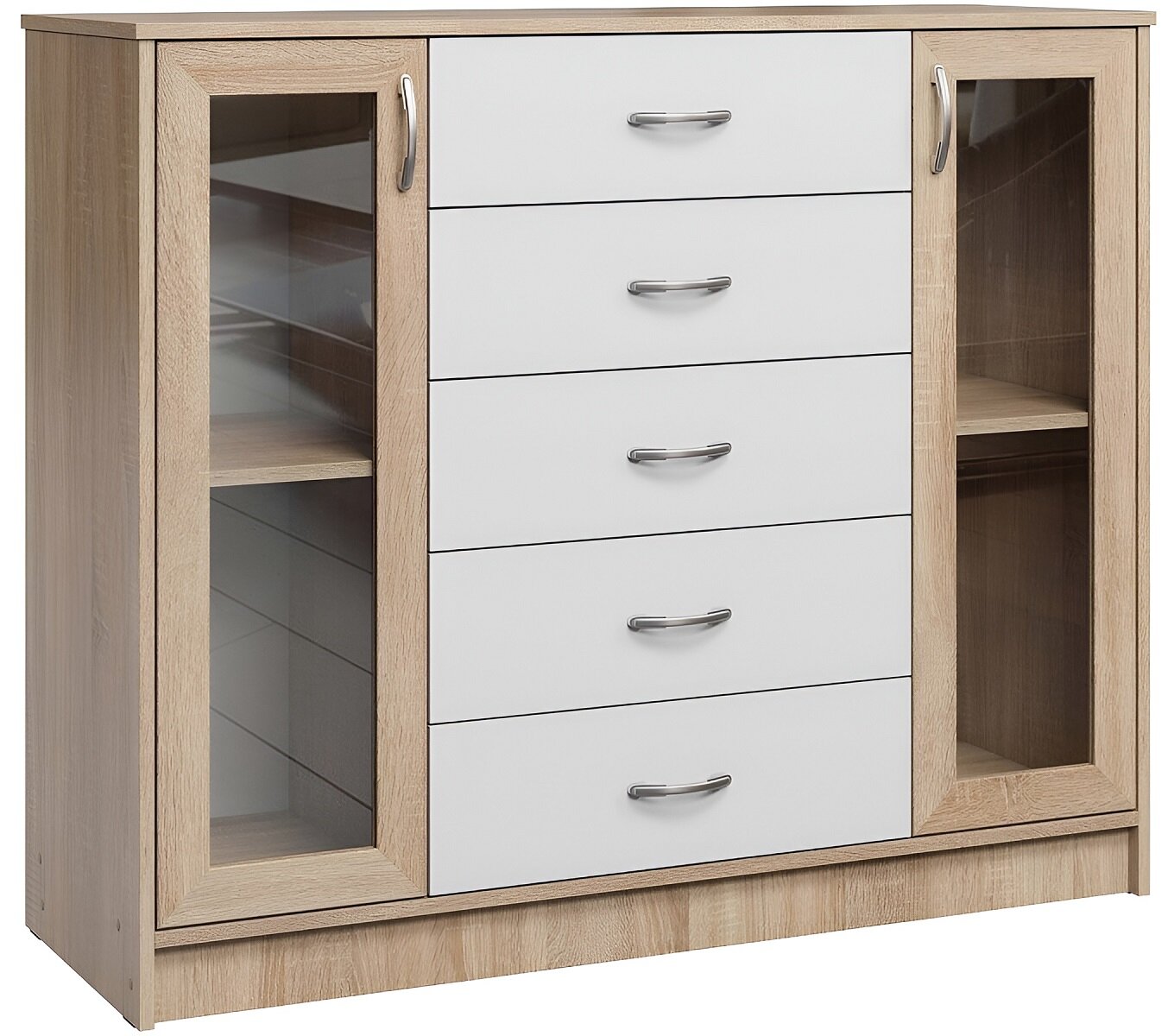 Купить Комод с 5 ящиками и 2 дверцами Венди-2,5 со стеклом, ШхГхВ: 120х42х100 см