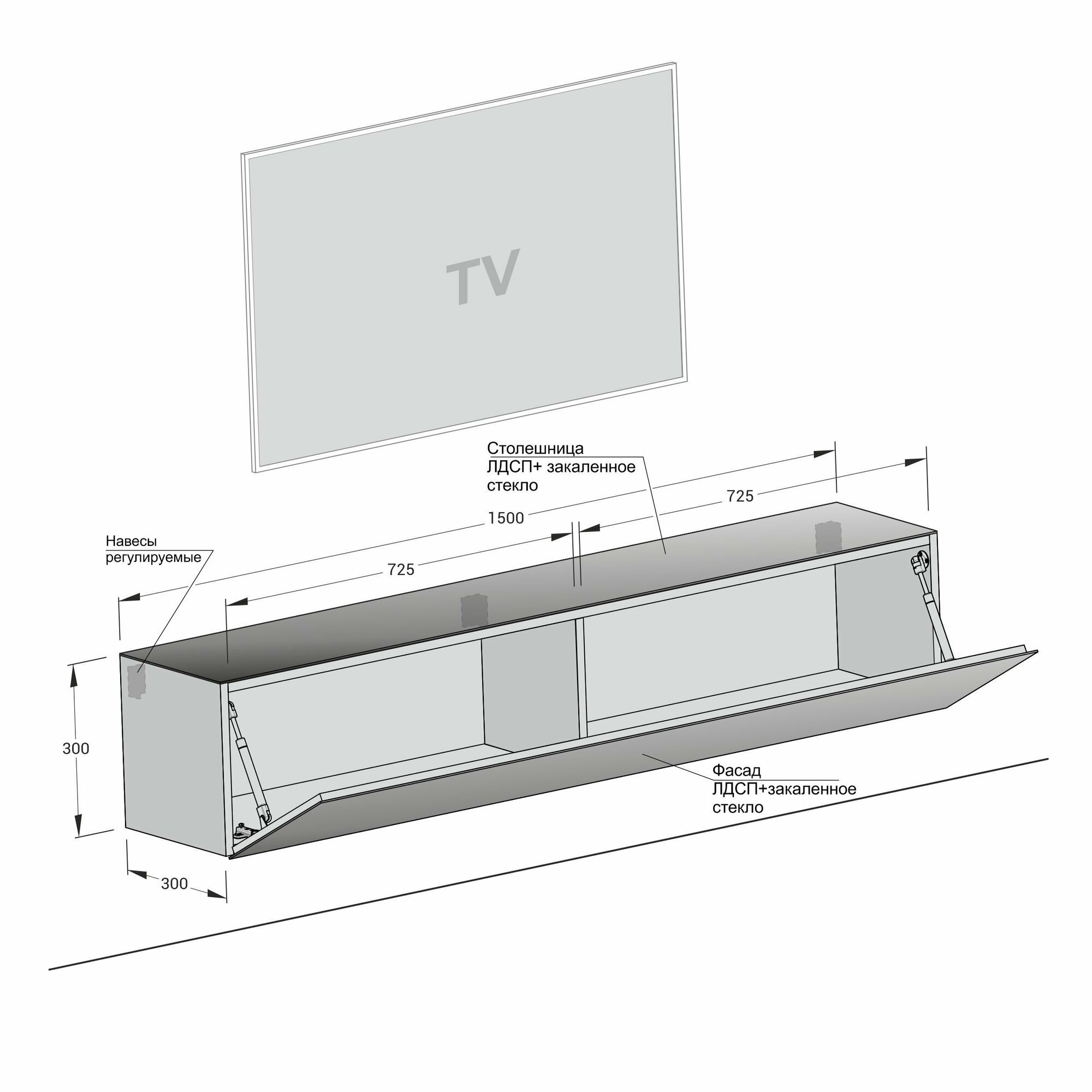 Тумба ТВ MD 661, 150х30х30 см, METALDESIGN, белый - белый