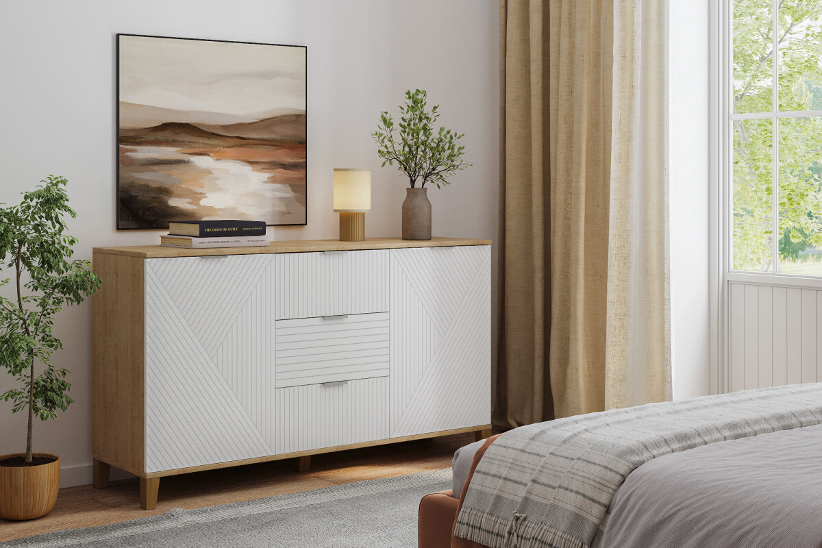 Комод Марвин 25 фрезеровка 8+11 Белый для документов для книг для обуви для одежды для посуды 140*80*40 Мегамебель