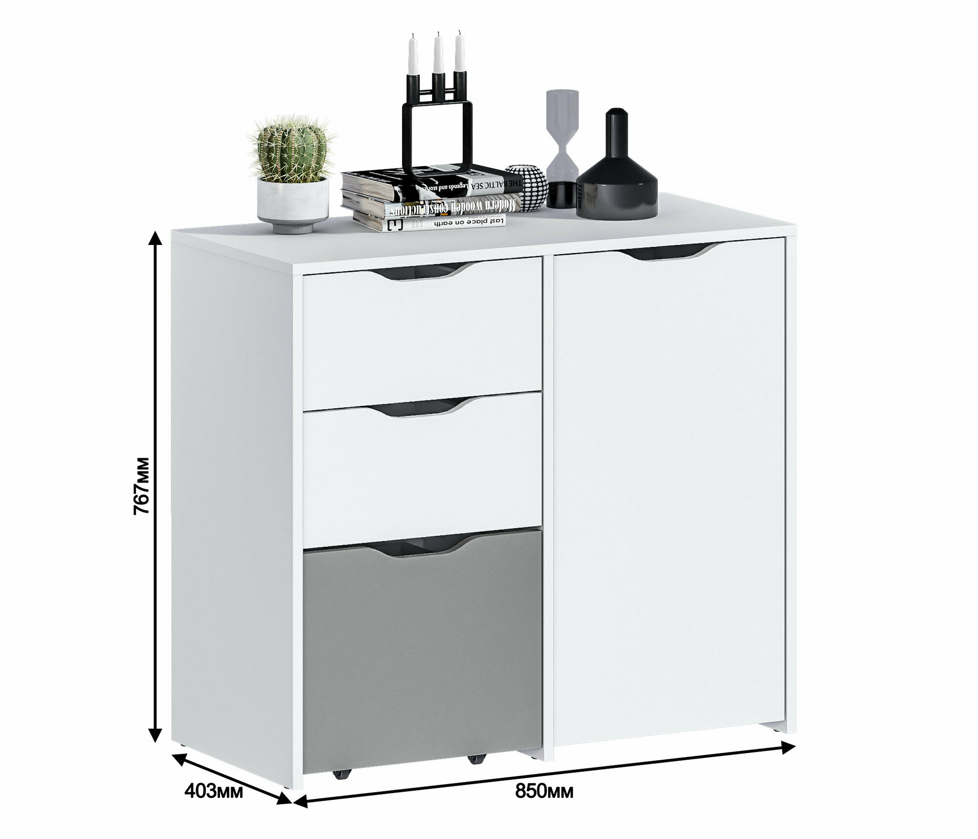 Однодверный комод столплит Mika СБ-3282 с 3 ящиками и полками, Белый/Серый 85х76х40 см интересное: