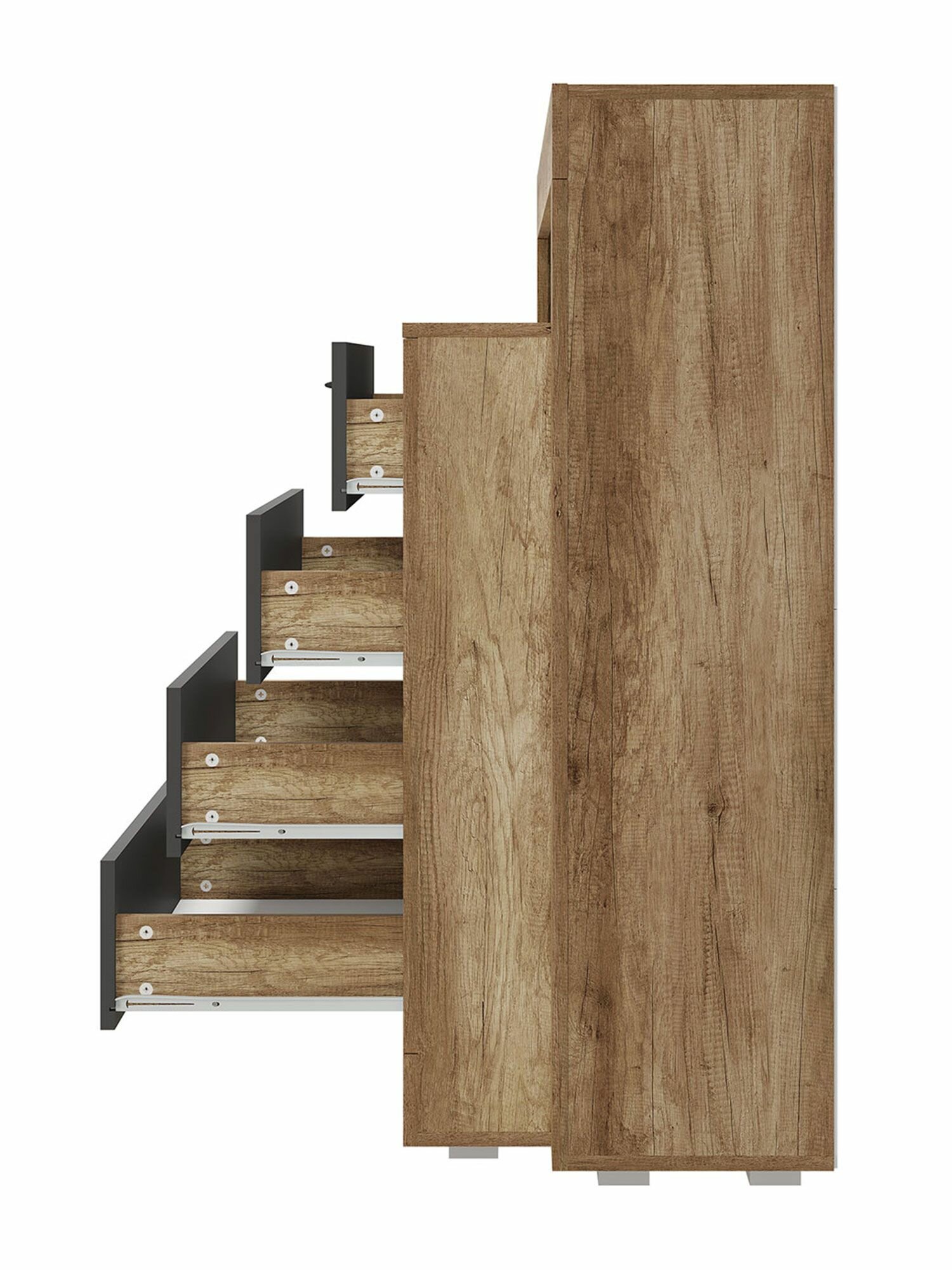 Купить Комод для одежды Пегас с дверцами, с ящиками, с полками, 136х40.4х104.2 см, Дуб Каньон / Графит