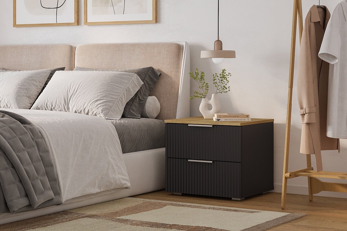 Тумба прикроватная МебельЛэнд24 Салерно 2 Черный 50x42x44 интересное: