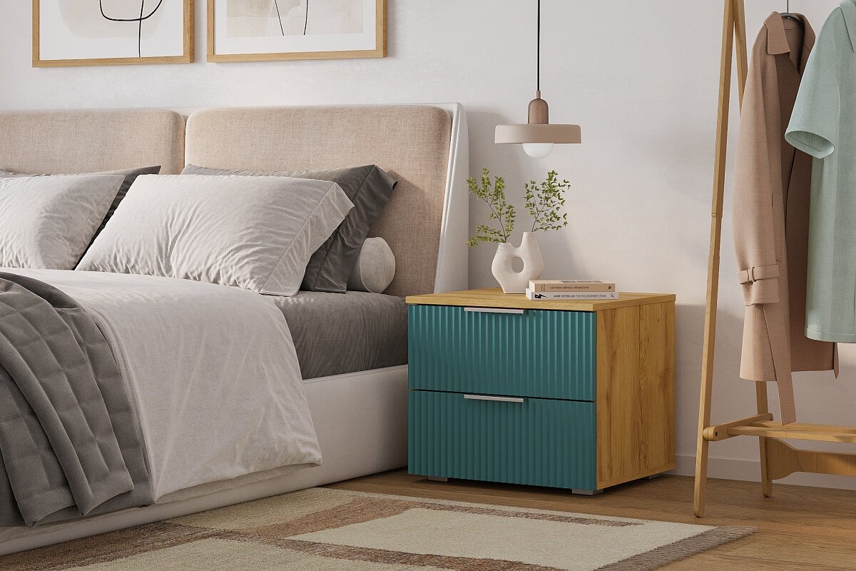 Тумба прикроватная МебельЛэнд24 Салерно 2 Аквамарин 50x42x44 синий интересное: