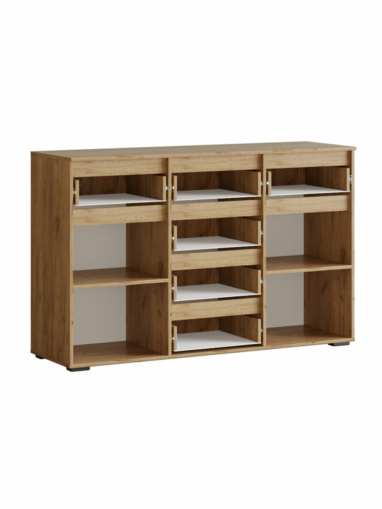 Комод для одежды Ирэн с ящиками, с полками, 150х46х96 см, Белый / Дуб Крафт золотой