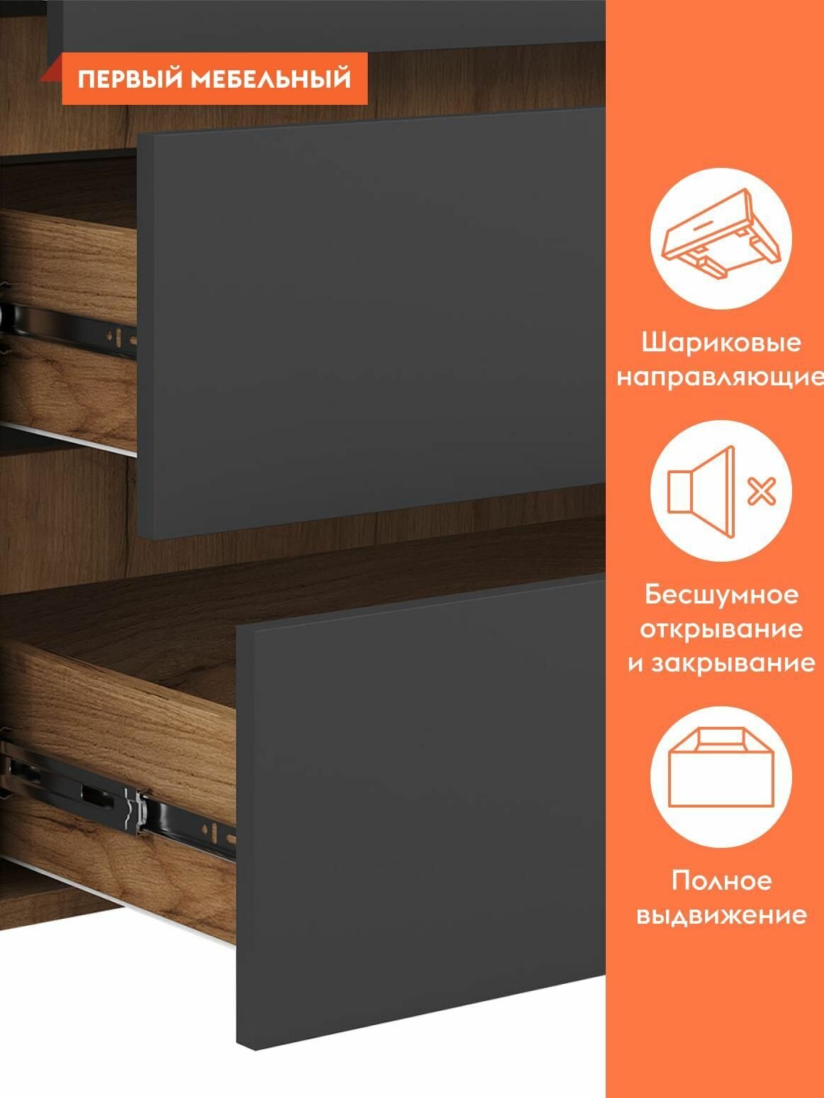 СохранитьКомод для одежды Ирэн с ящиками, с полками, 150х46х96 см, Дуб Крафт золотой / Графит серый интересное: