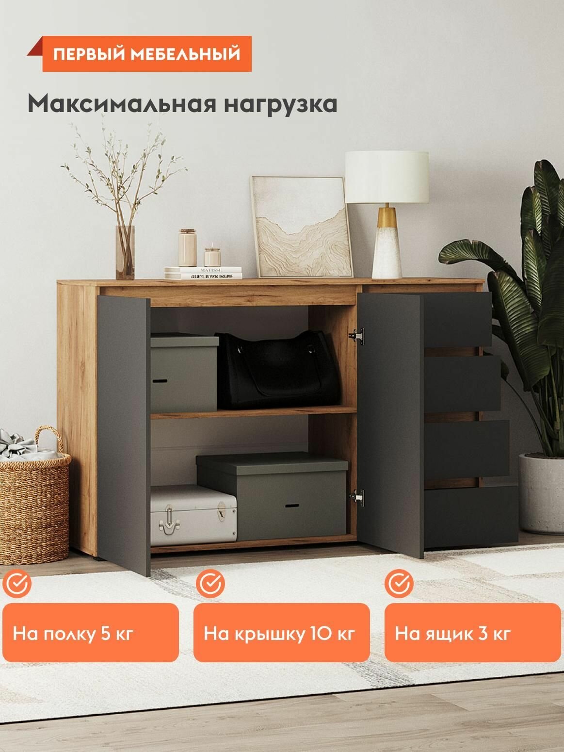 Купить Комод для одежды Ирэн с ящиками, с полками, 150х46х96 см, Дуб Крафт золотой / Графит серый