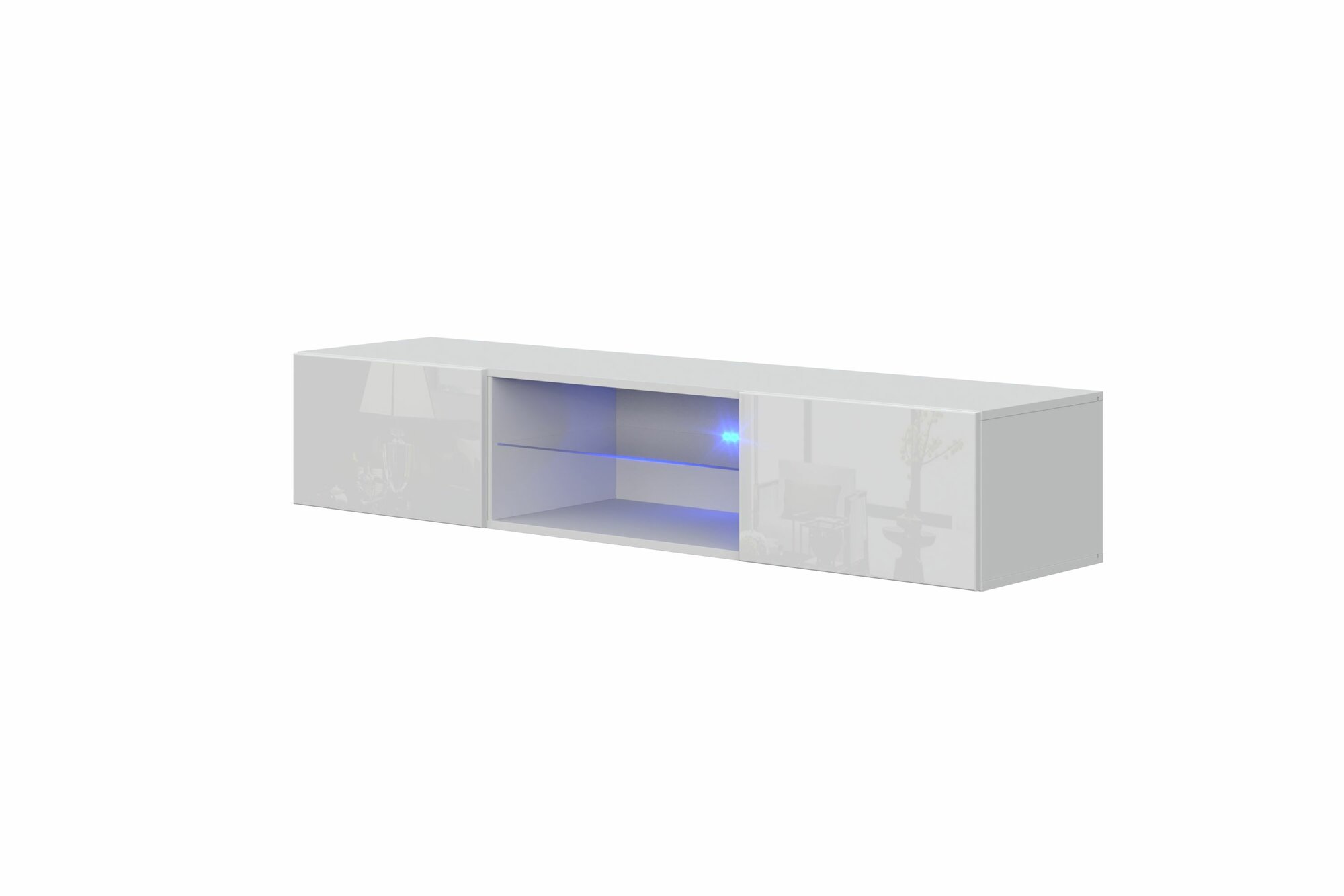 Купить Тумба под ТВ Point 33 Белый глянец, подсветка полок, 160х30х40 (ШхВхГ)