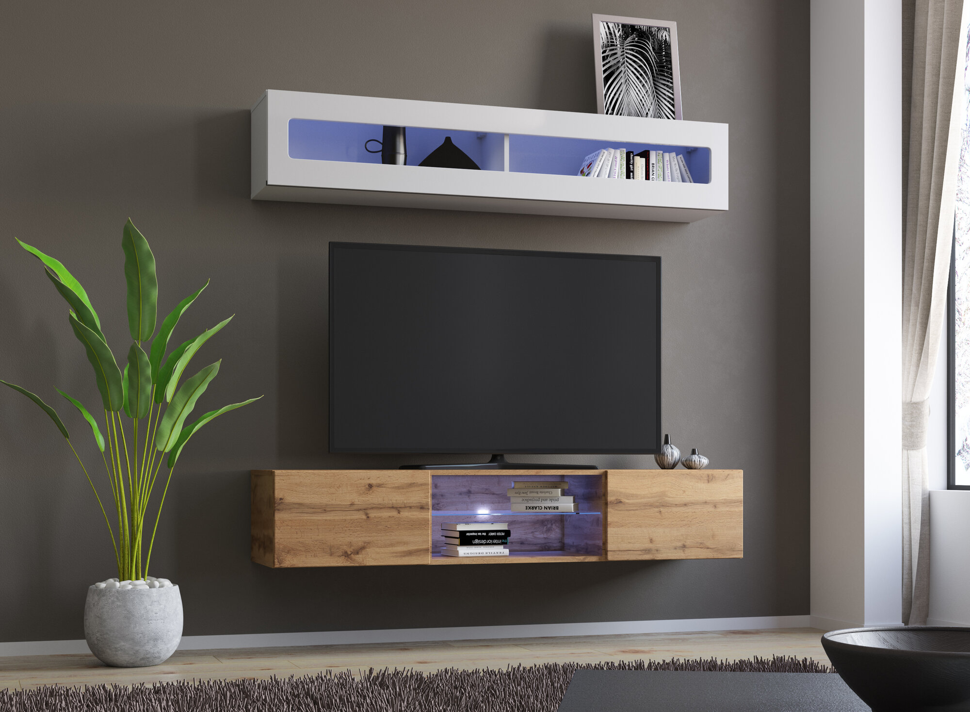 Купить Тумба под ТВ POINT 33, Дуб Вотан, подсветка полок, 160х40х30 см