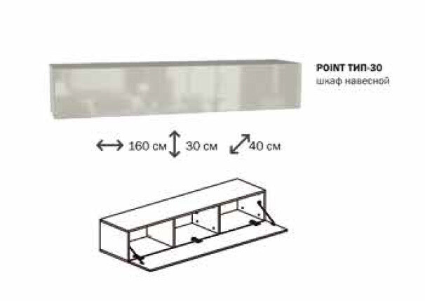 Тумба под ТВ POINT 30, Белый глянец, 160х30х40 (ШхВхГ) интересное:
