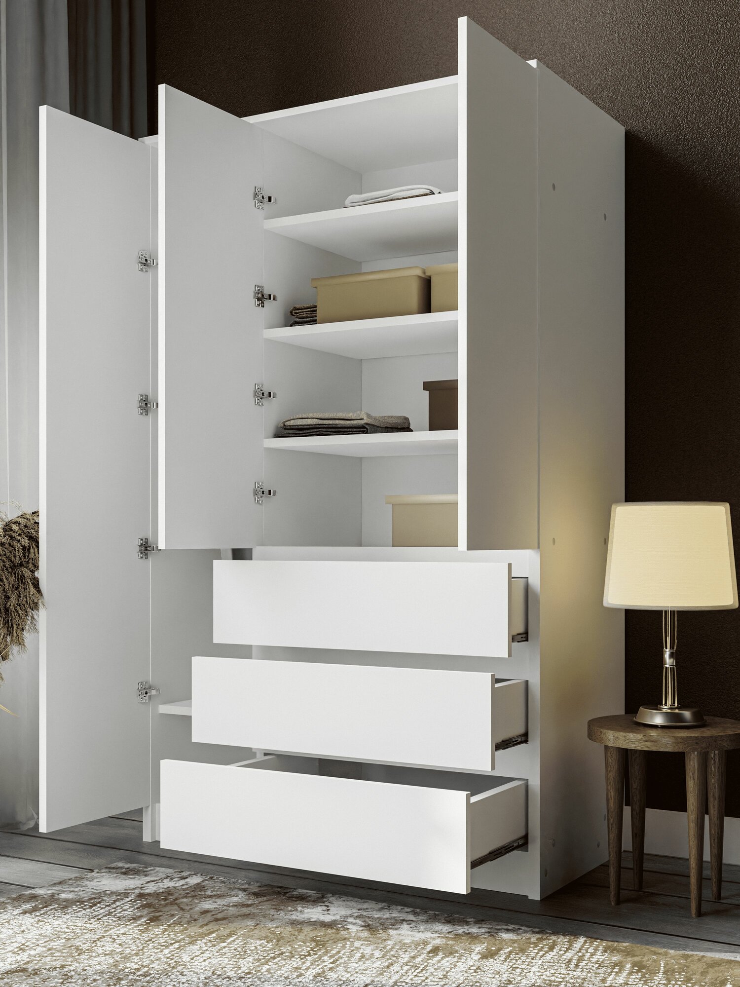 Шкаф для одежды распашной Нонтон Луас, 120 см, 7 полок и штанга, белый глянец