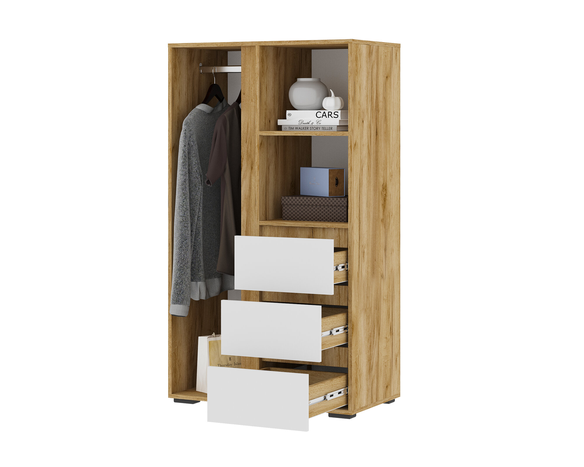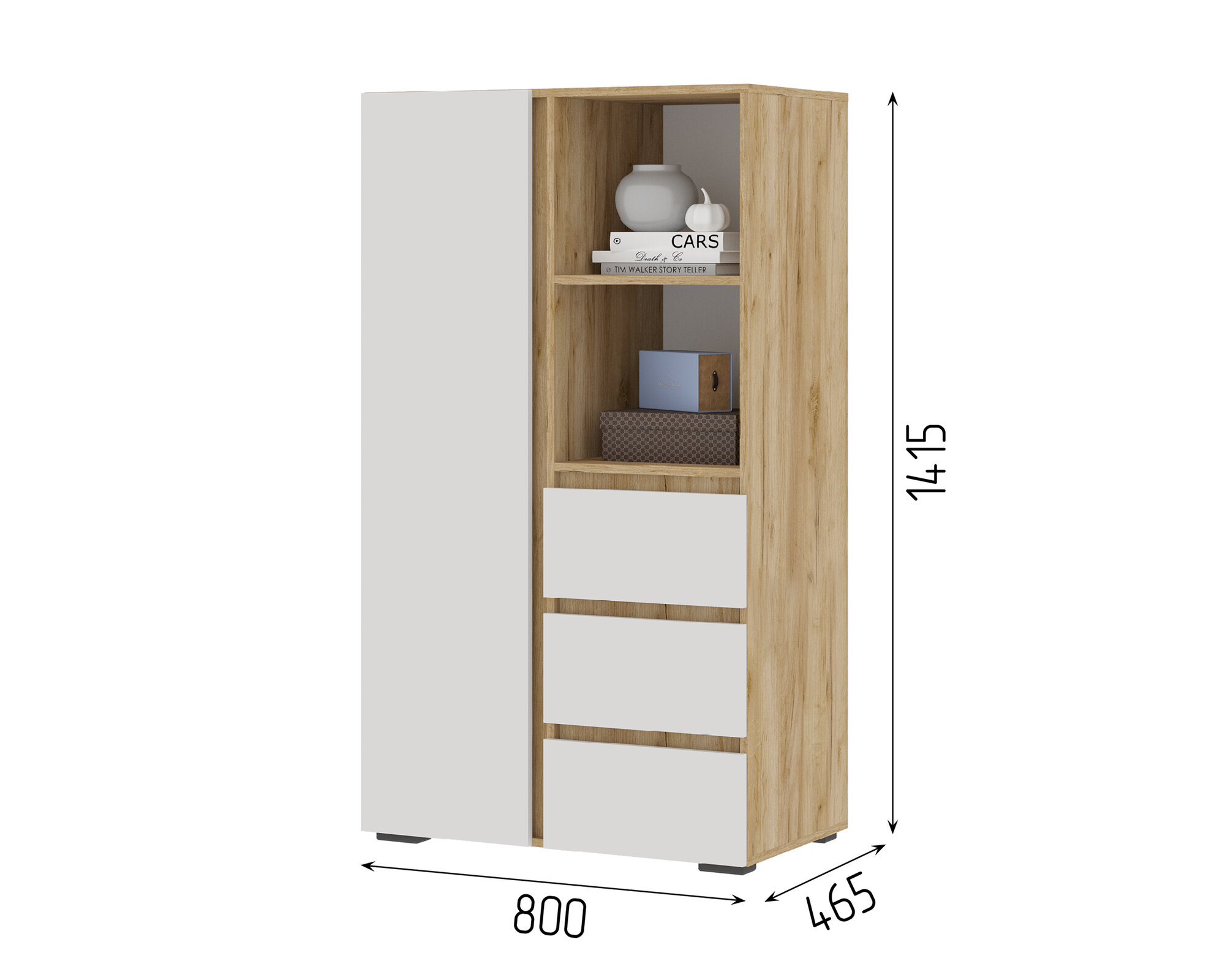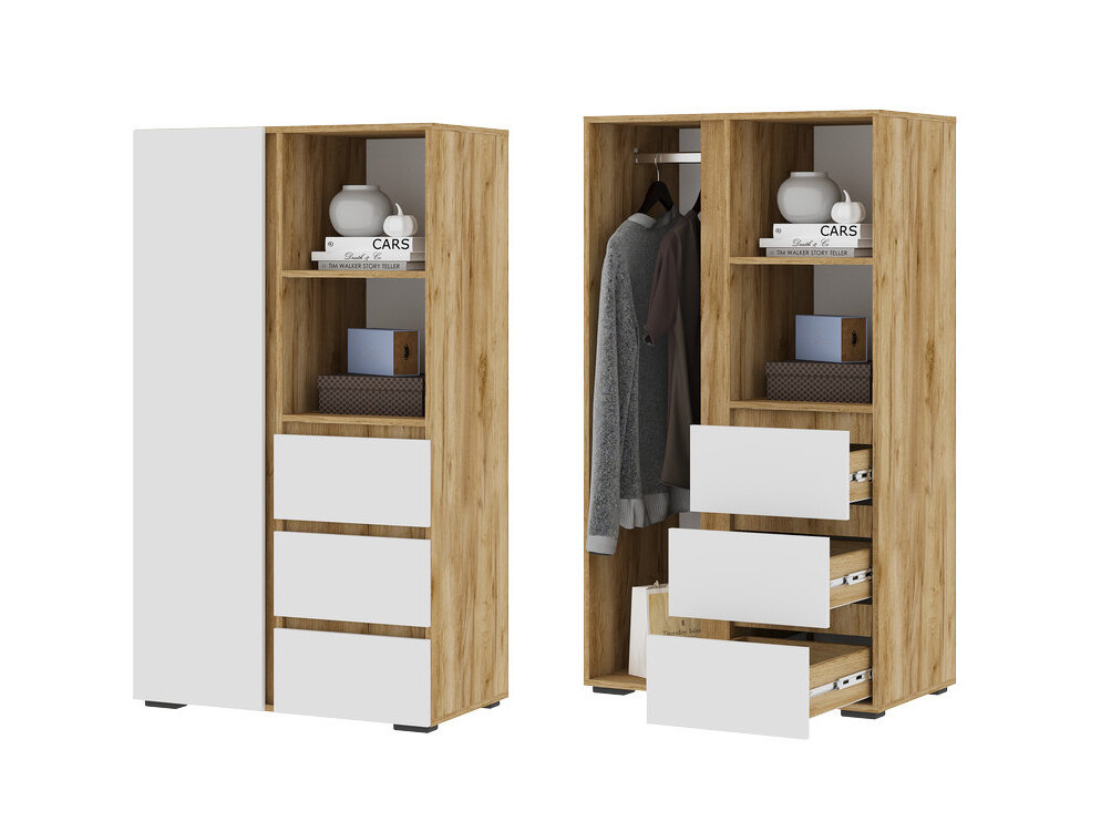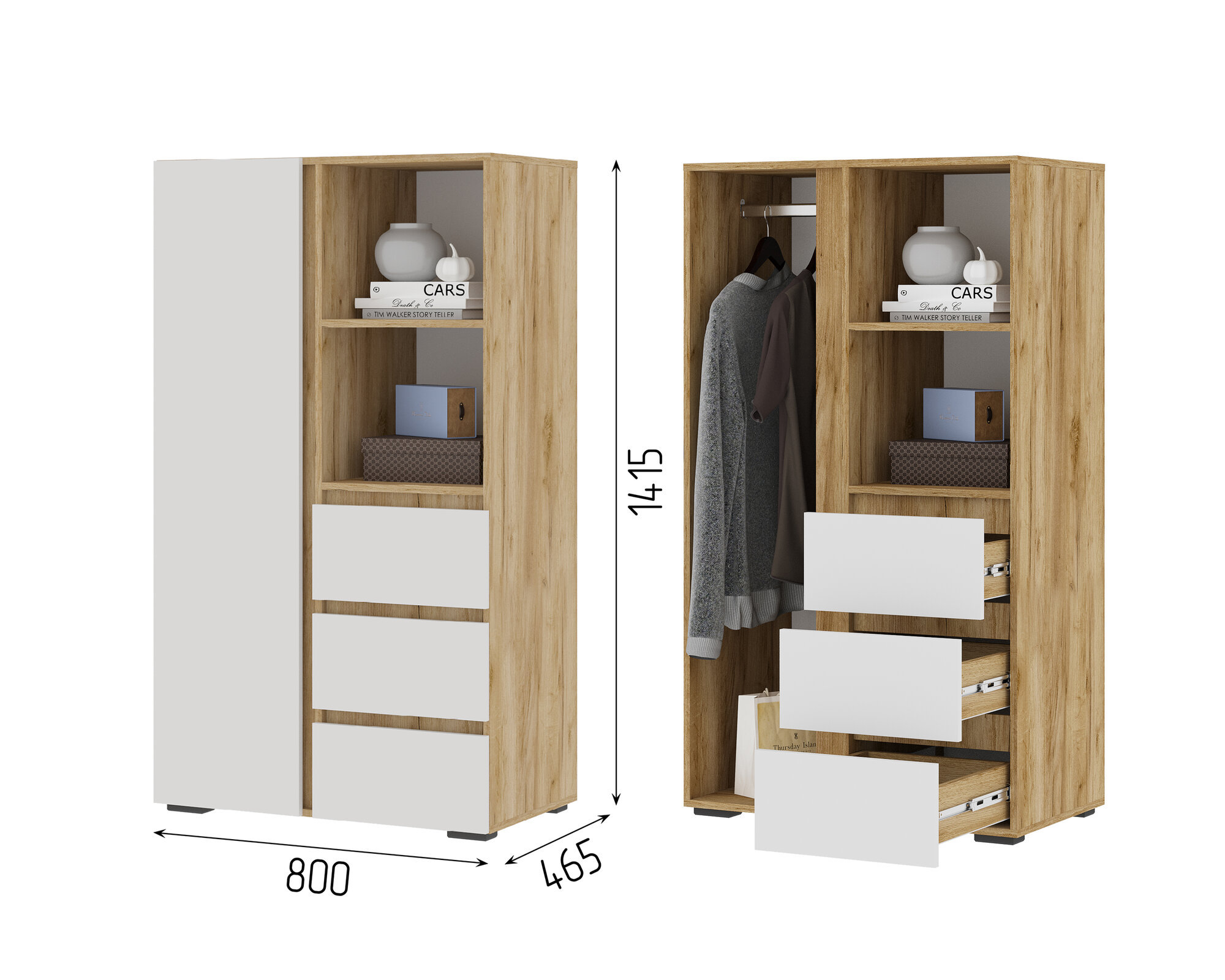 Шкаф Хелен ШК-03 с выдвижными ящмками (0,802х1,414х0,460) цвет Дуб крафт золото - Белый Стендмебель интересное: