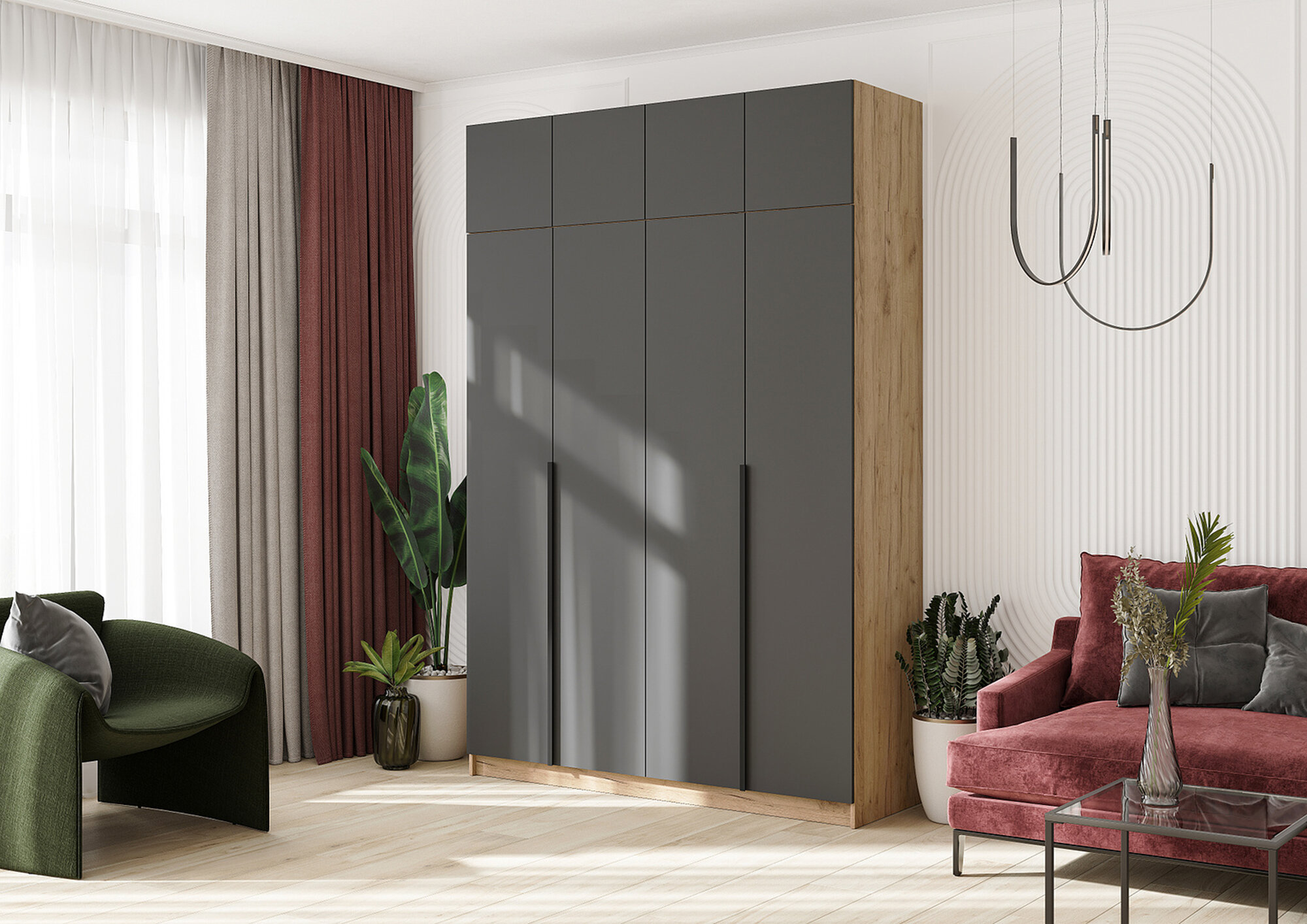 Шкаф для одежды Лион ШК-03, 4-х створчатый (1600х2000х550) дуб крафт/графит серый