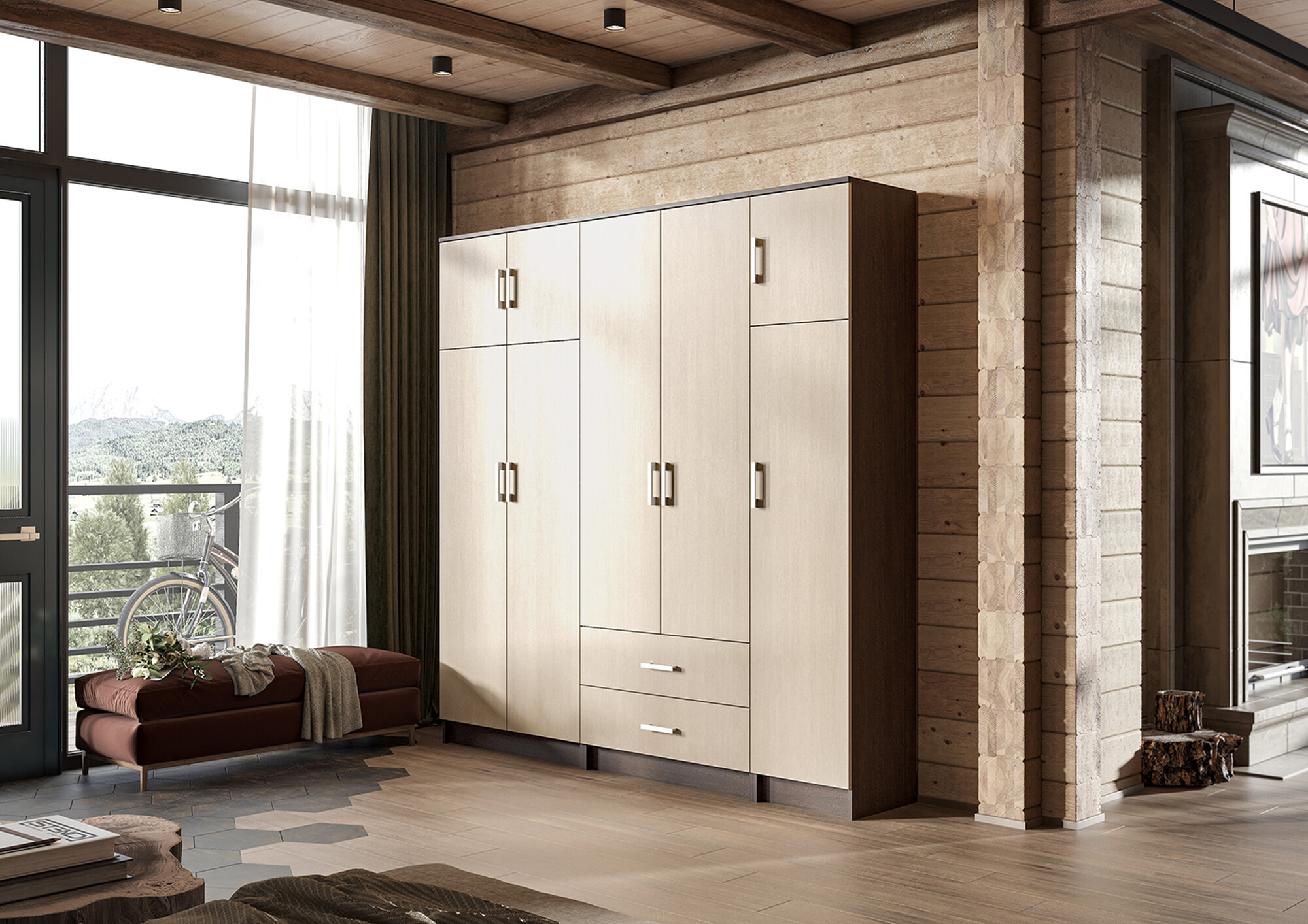 Шкаф Вегас 2000 дуб крафт табачный-дуб крафт белый