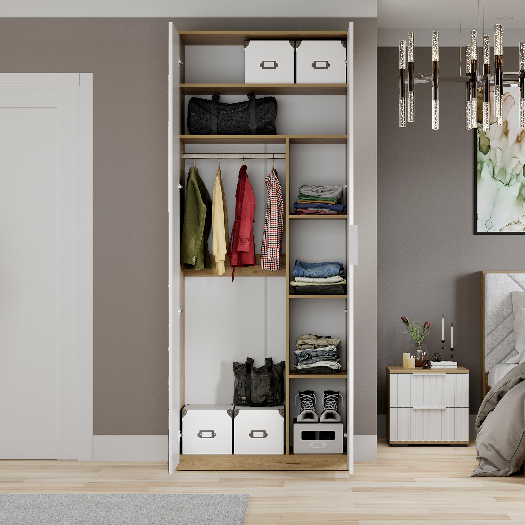 Шкаф для одежды распашной Нонтон Луас, 120 см, 7 полок и штанга, белый глянец