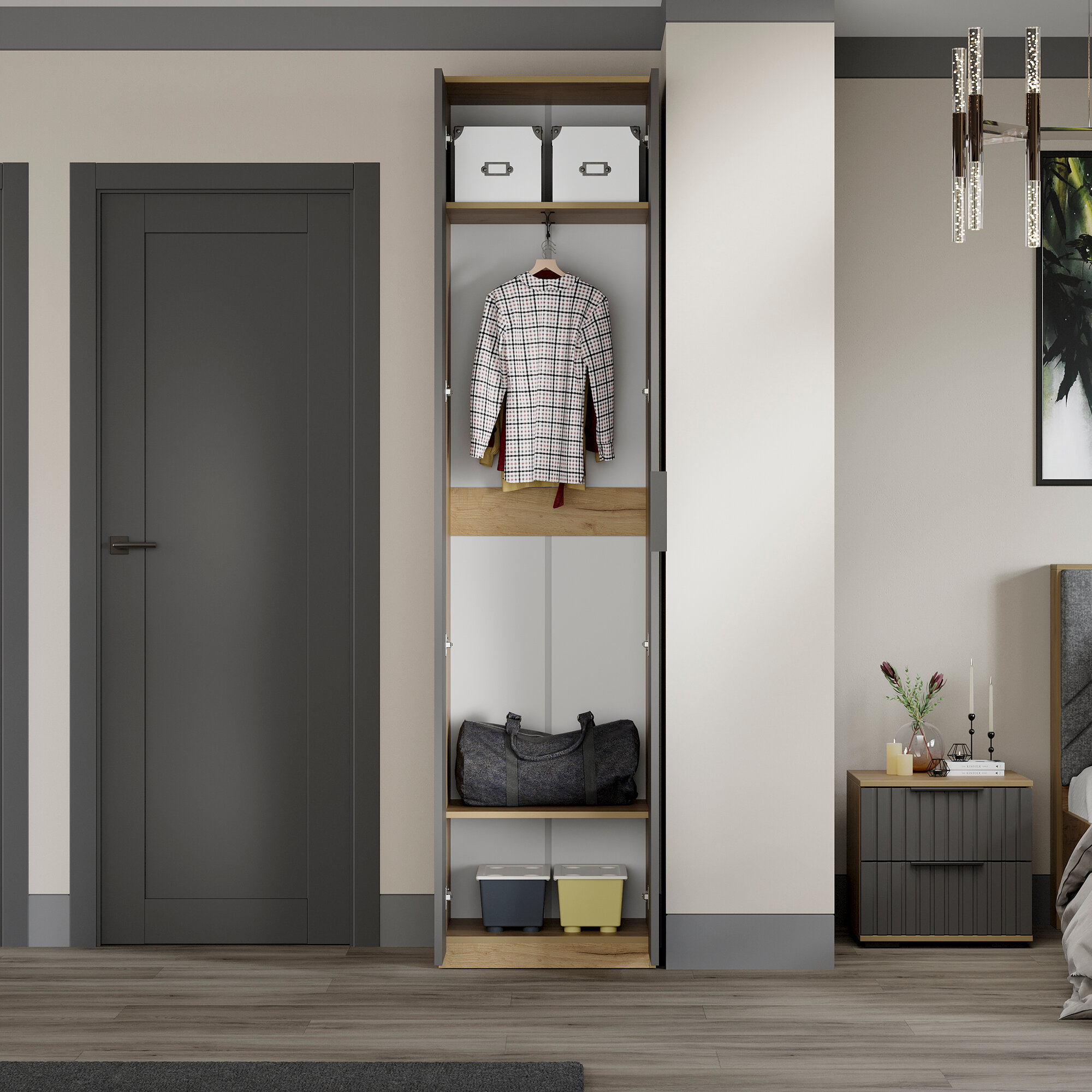 СохранитьШкаф распашной для одежды Хилтон исп.2 (Дуб Крафт золотой/Графит матовый) интересное: