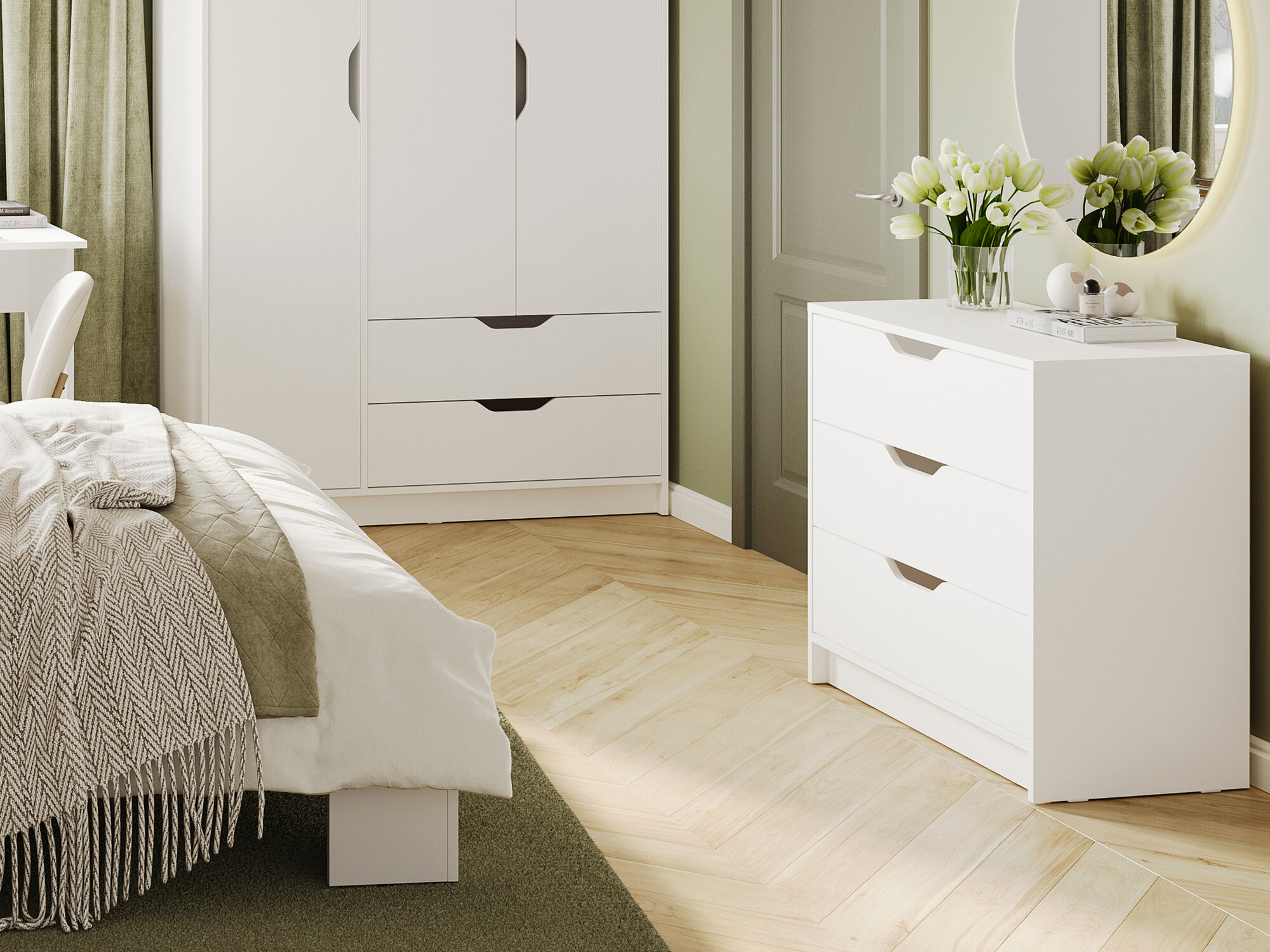 Шкаф распашной Мори-3 Белый для одежды двухдверный 100*250*50 Мегамебель