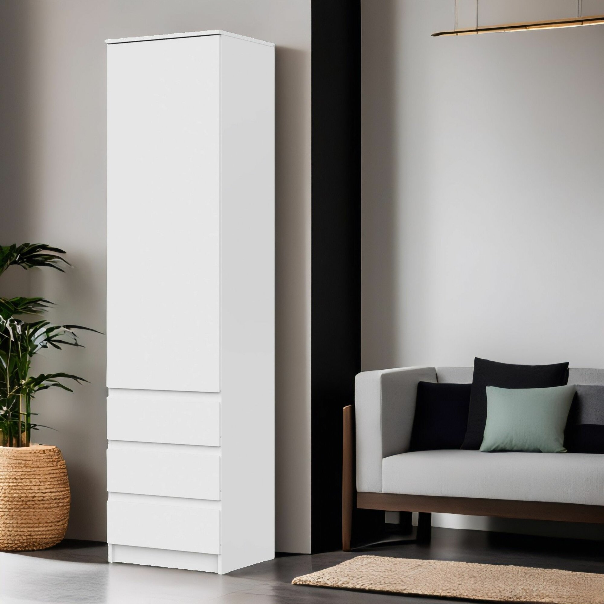 Купить Шкаф-пенал с распашной дверцей и выдвижными ящиками STARK ШКЯ-1, Белый, 50,1х200,3х43,3 см (ШхВхГ)
