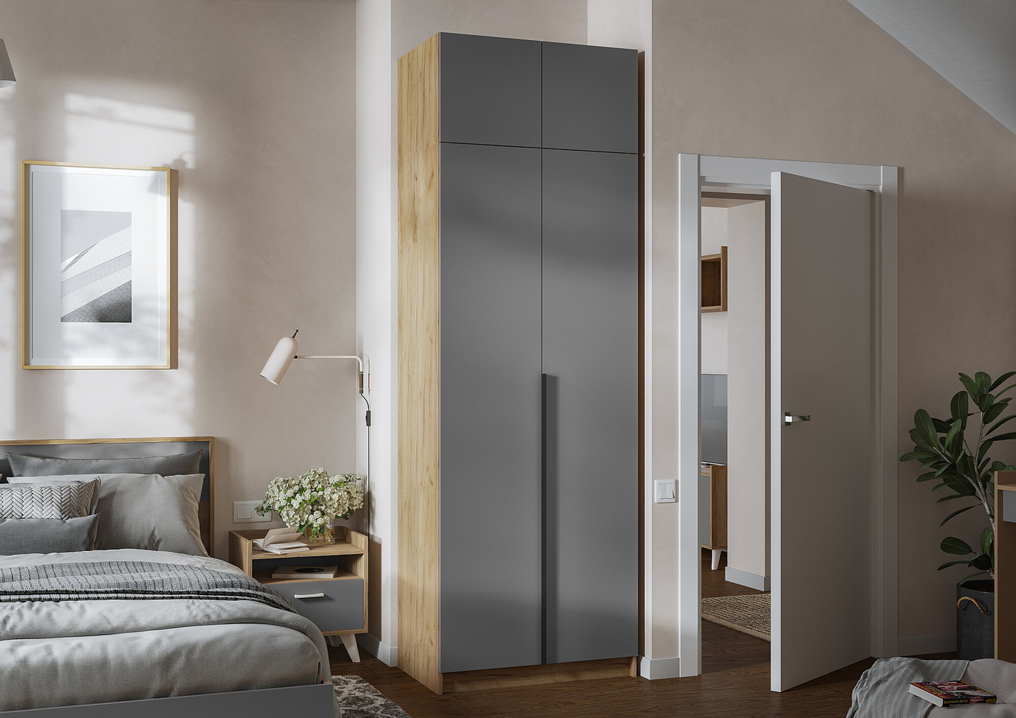 Шкаф 2-х створчатый Лион ШК-01 цвет дуб крафт золото-графит серый Стендмебель интересное: