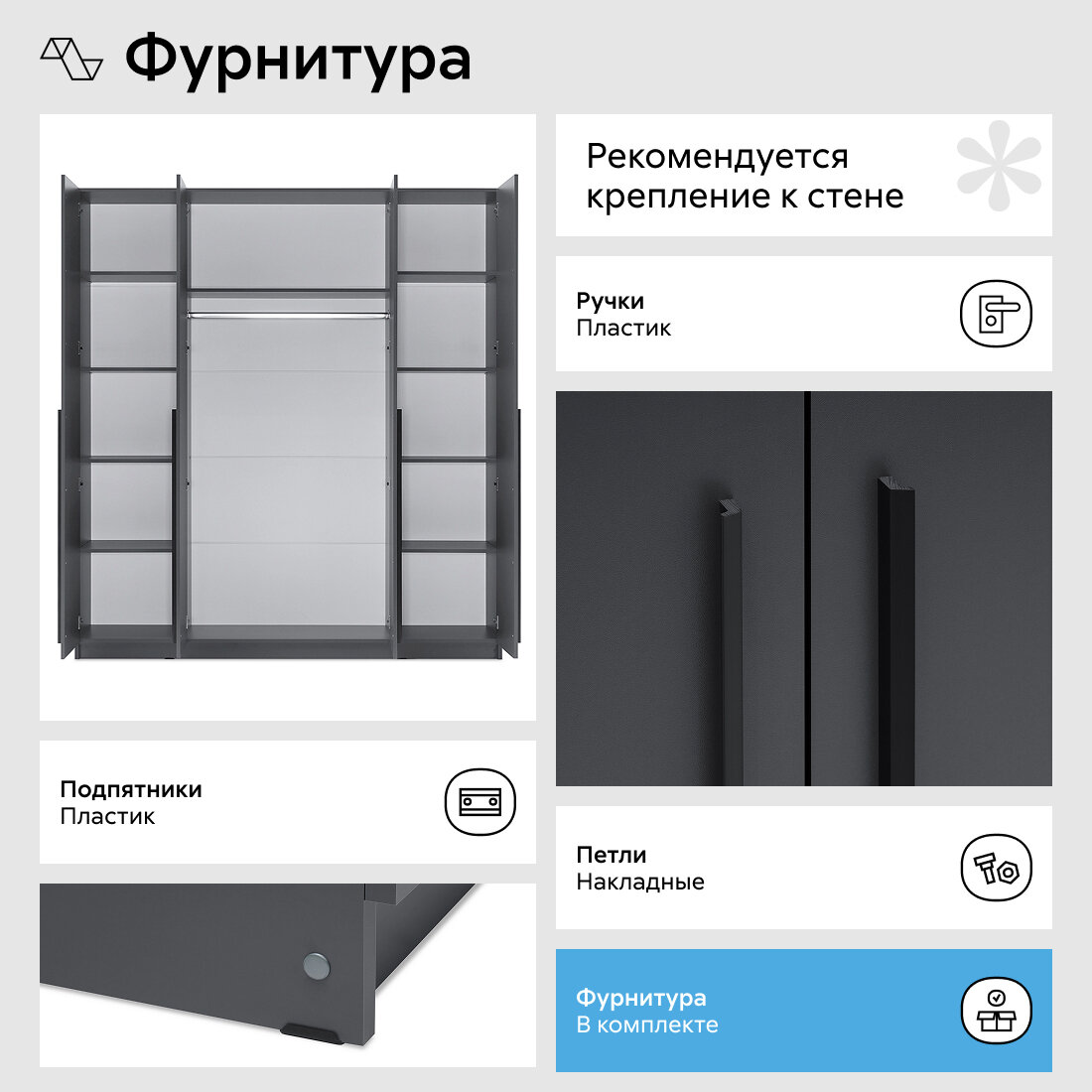 Шкаф для одежды с полками распашной Нонтон Берген, серый графит, 200х52х220 см интересное: