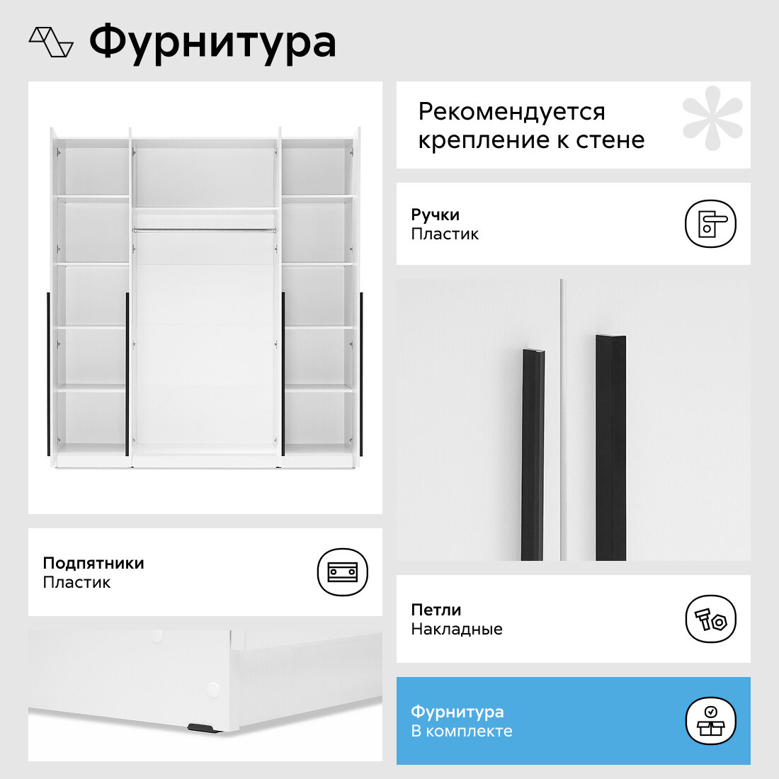 Шкаф для одежды распашной Нонтон Луас, 120 см, 7 полок и штанга, белый глянец