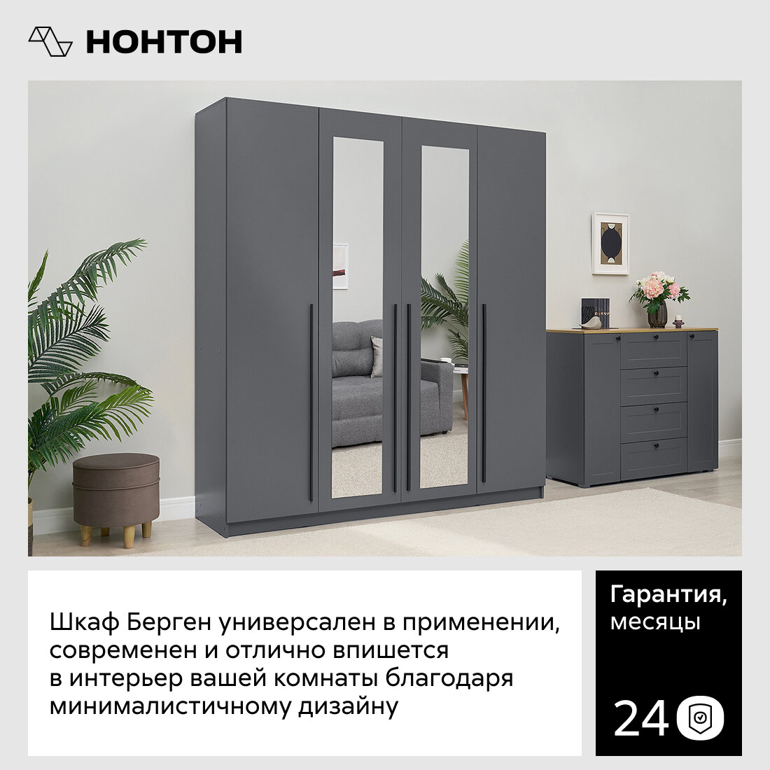 Шкаф для одежды с зеркалами и полками распашной Нонтон Берген, серый графит, 200х52х220 см интересное: