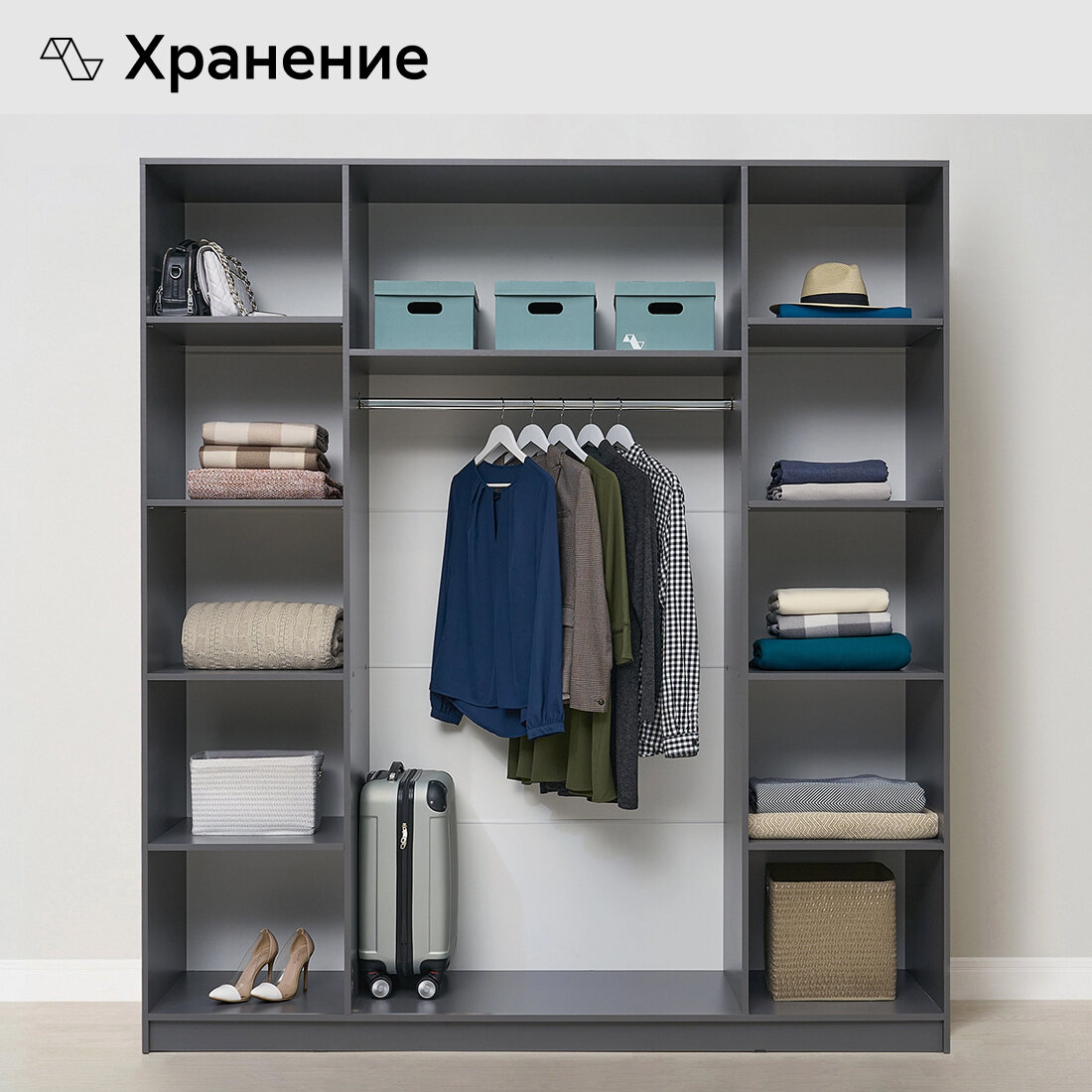 Купить Шкаф для одежды с зеркалами и полками распашной Нонтон Берген, серый графит, 200х52х220 см