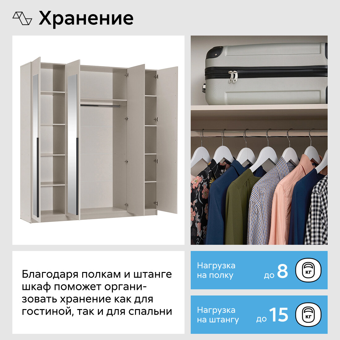 Шкаф для одежды с зеркалами и полками распашной Нонтон Берген, кашемир, 200х52х220 см интересное: