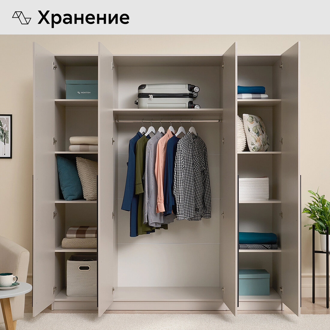 Шкаф для одежды с полками распашной Нонтон Берген, кашемир, 200х52х220 см