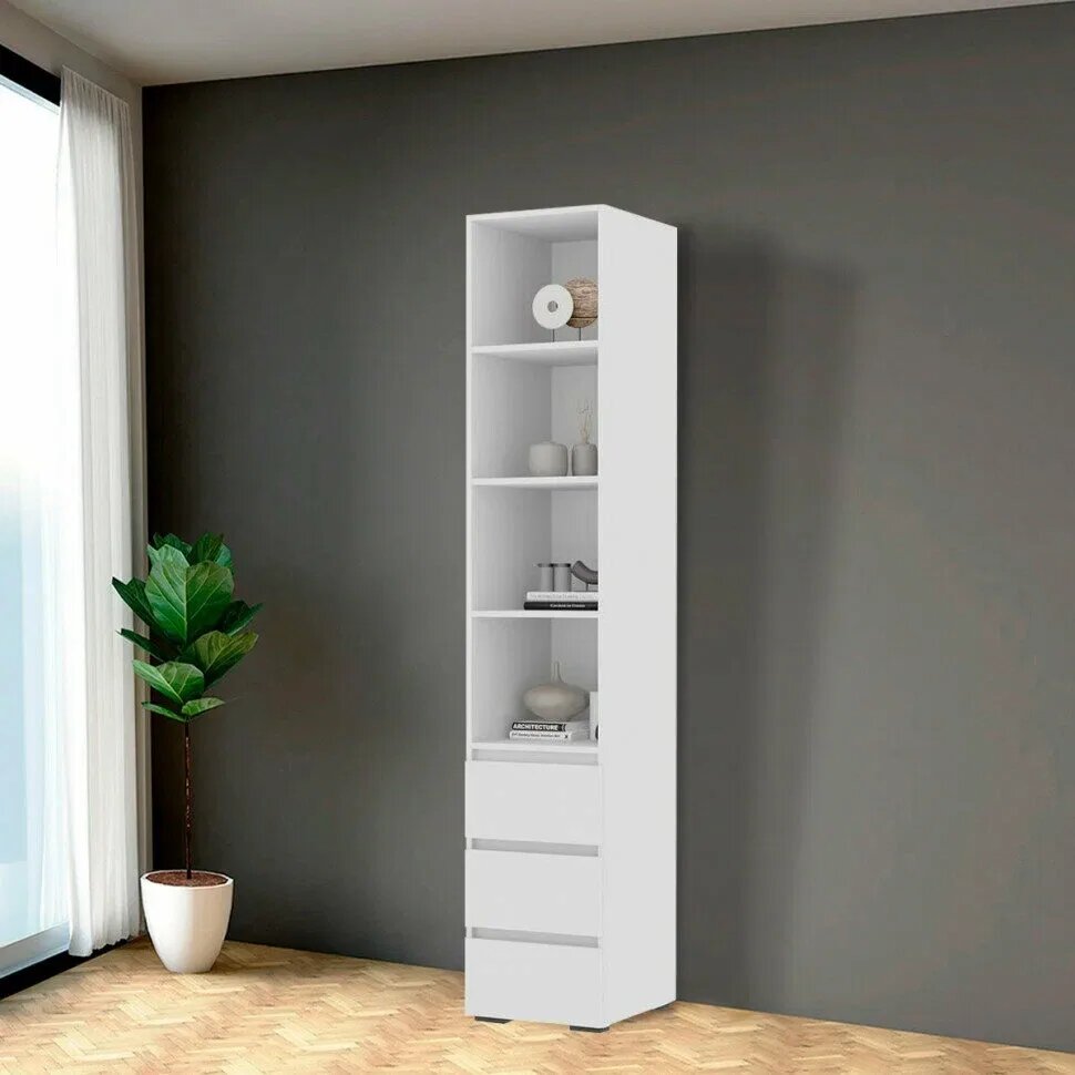 Пенал с открытыми полками и 3 выдвижных ящика 0,400х2,100х0,460