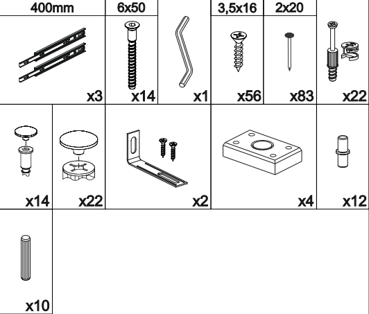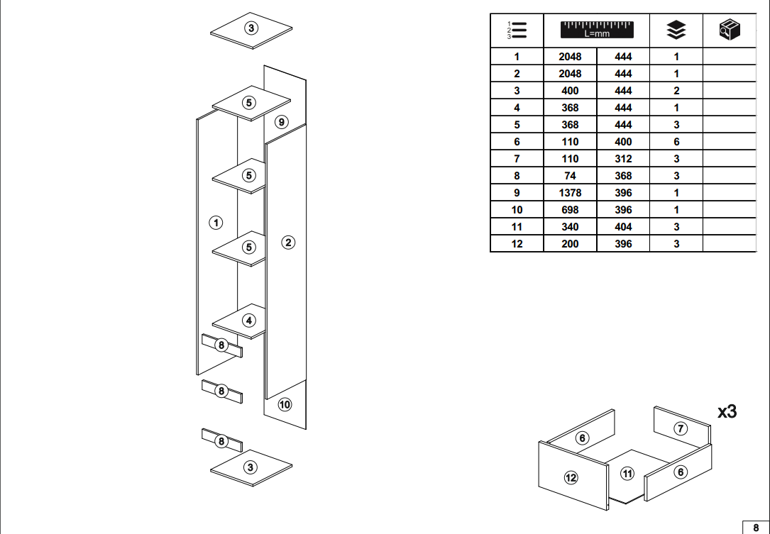 Пенал с открытыми полками и 3 выдвижных ящика 0,400х2,100х0,460