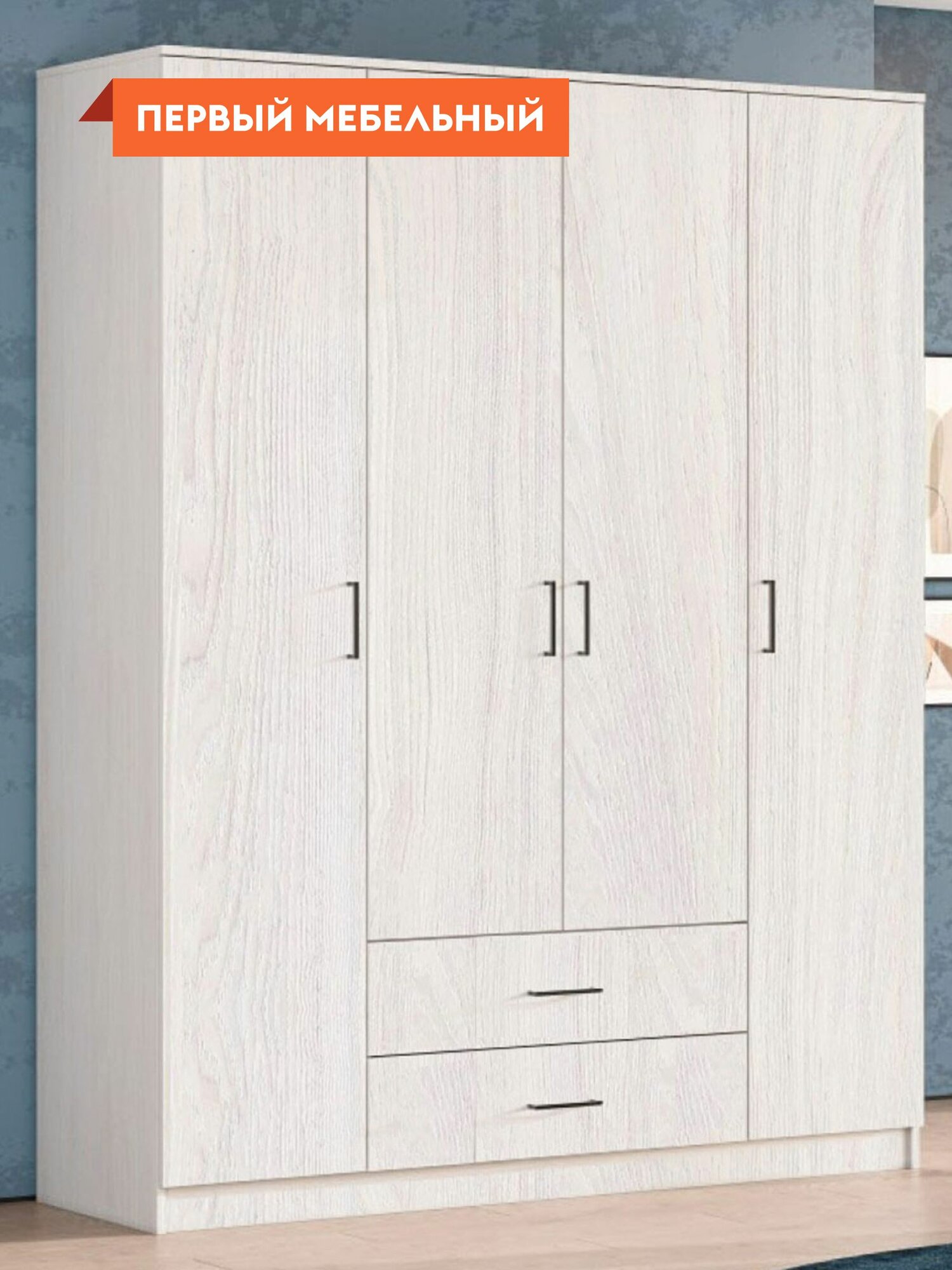 Шкаф распашной для одежды, 4 дв Севан, с ящиками, с полками, продольная штанга, 160.1х52х205 см, Ясень Анкор светлый интересное: