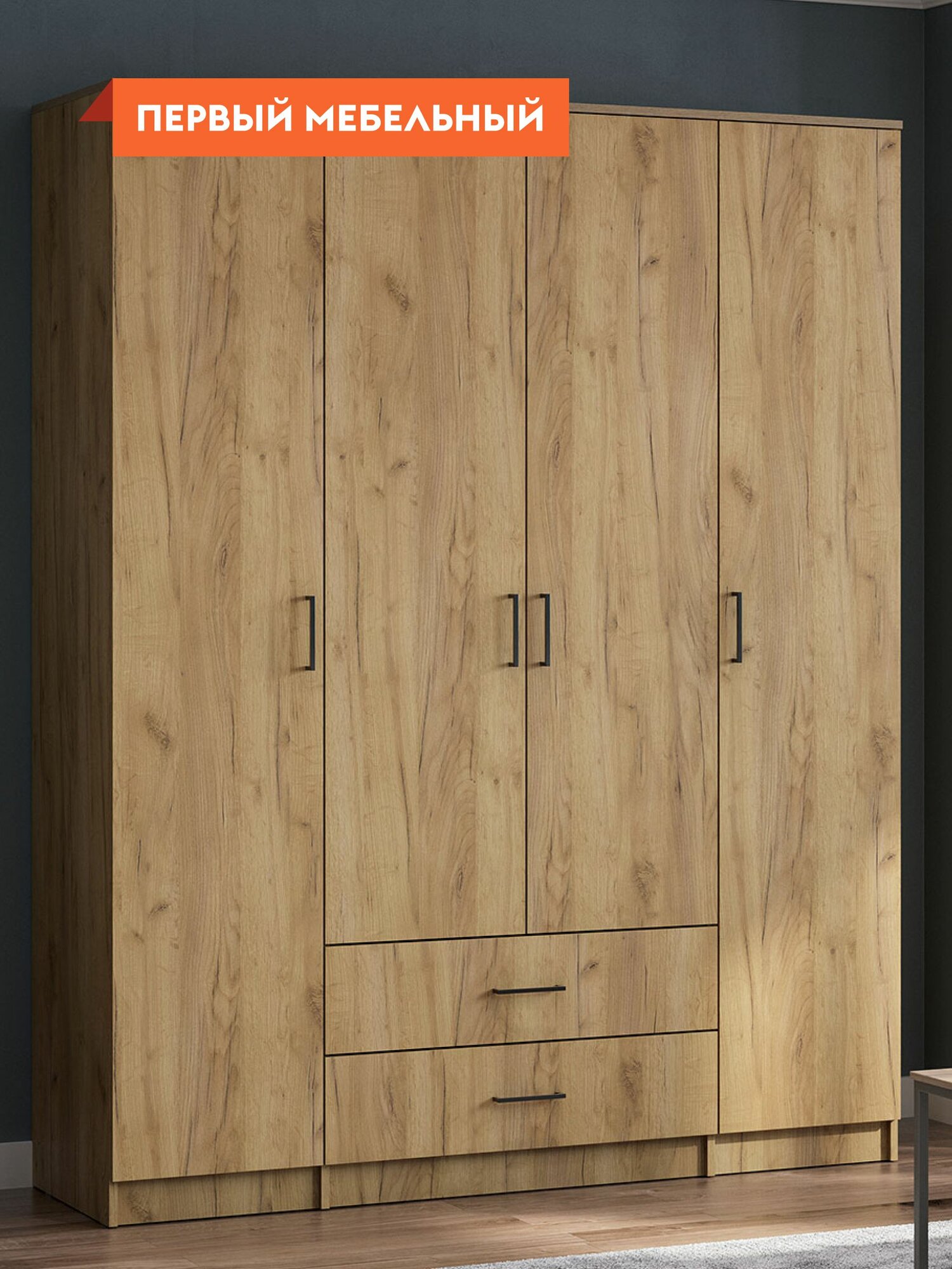 Шкаф распашной для одежды, 4 дв Севан, с ящиками, с полками, продольная штанга, 160.1х52х205 см, Дуб золотой интересное: